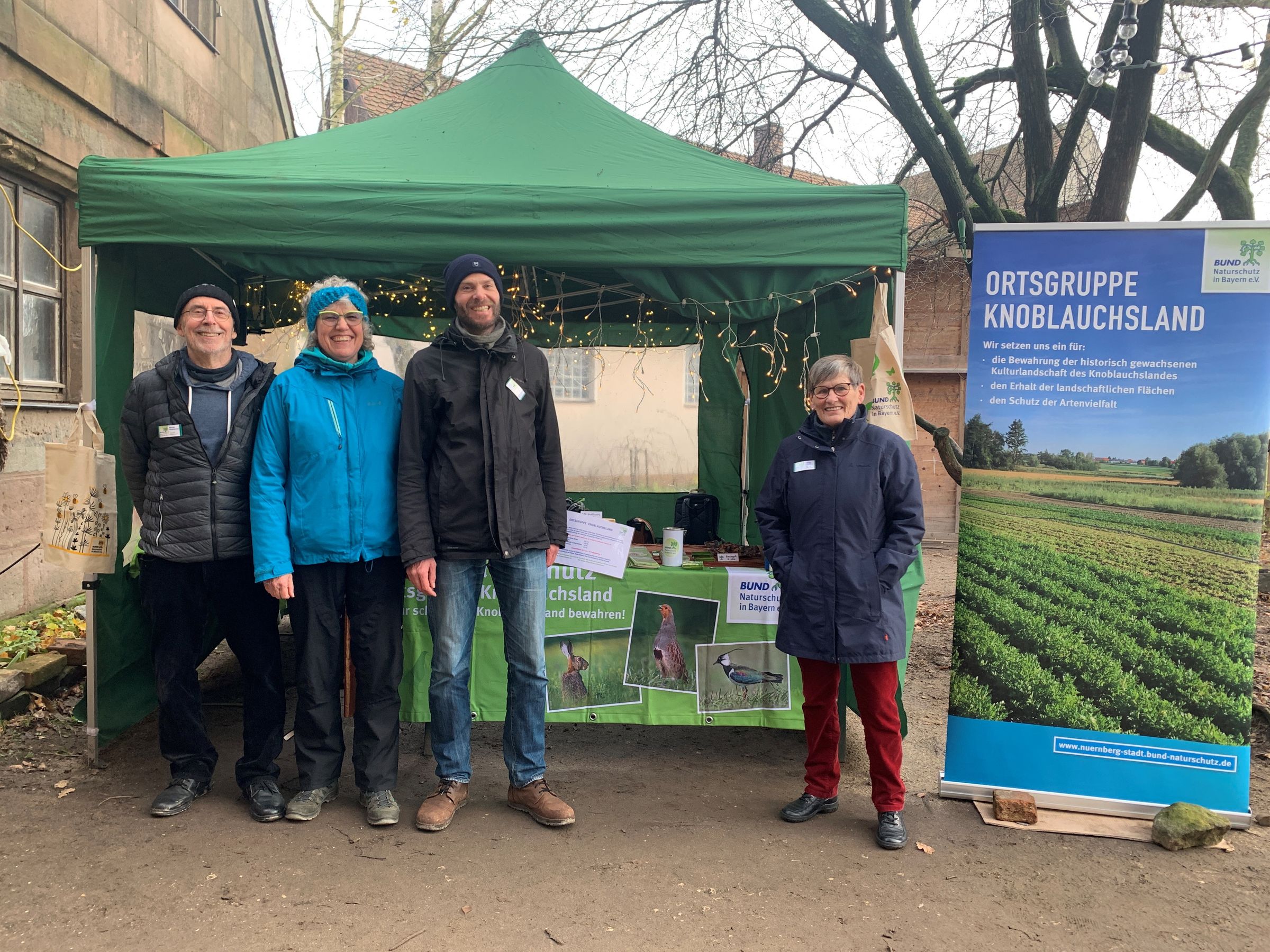 Am Samstag mussten wir unsere Wetterfestigkeit bei Dauerregen unter Beweis stellen. Trotzdem war unser Stand insgesamt gut besucht. Wir konnten etliche Liter Bio-Apfelsaft von unserer eigenen Streuobstwiese in Kleingründlach verkaufen. Darüber hinaus waren Vogelhäuschen und Stofftaschen gefragt. Viele wollten sich auch über Themen rund um den Umwelt- und Artenschutz informieren.
