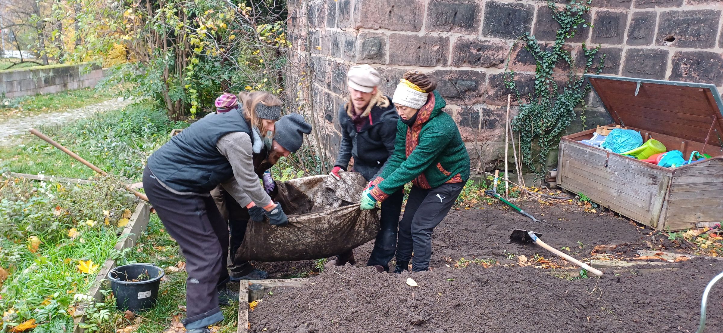 Dazu noch 2m3 Erde von SÖR – das will erst mal weggeschafft werden! Sechs tatkräftige Helfer fanden sich am Freitag, den 7. November um 9:00 Uhr auf der Mauer ein und schufteten, bis die Beete standen. Danke an alle. Schee woar's!