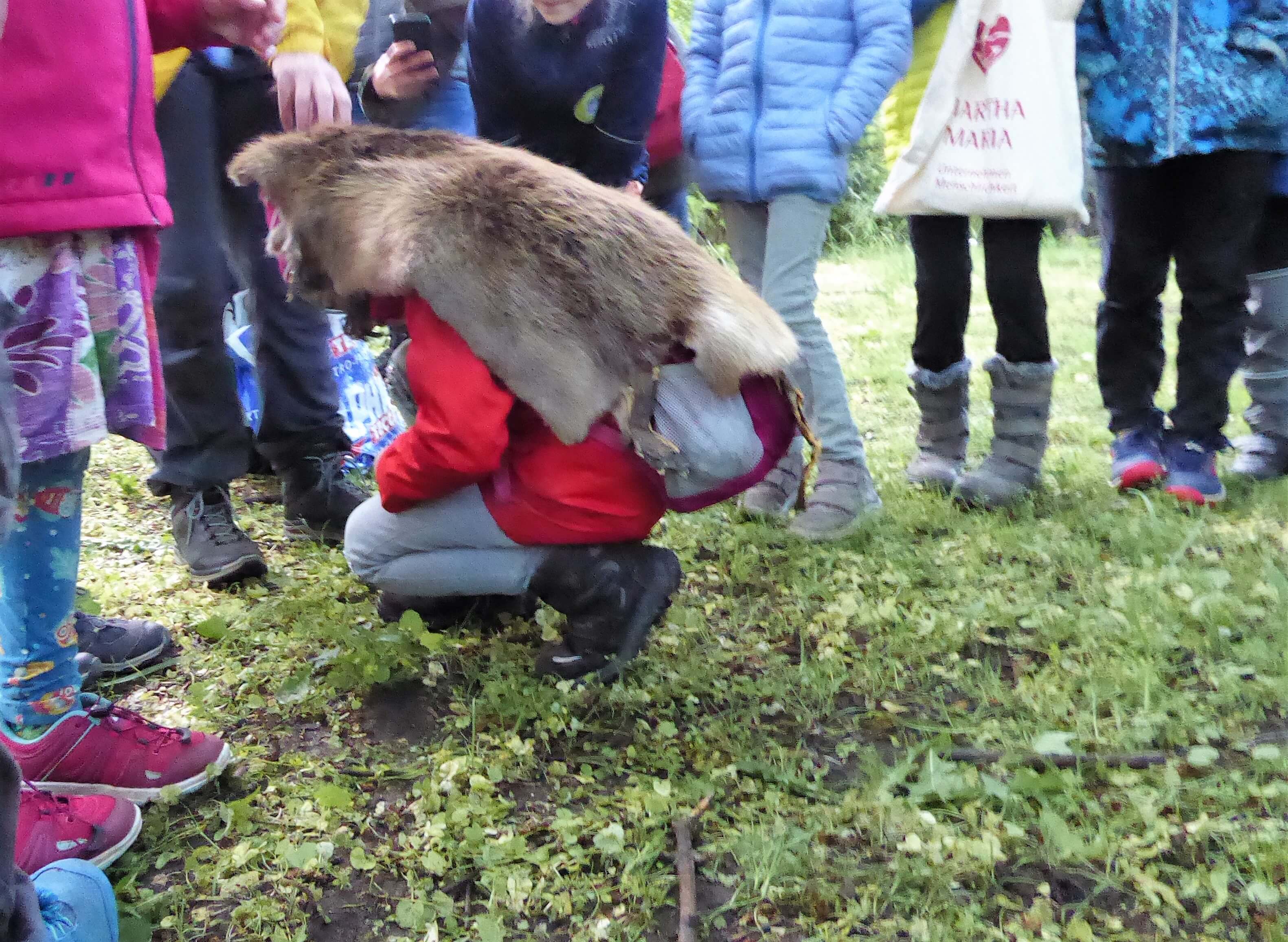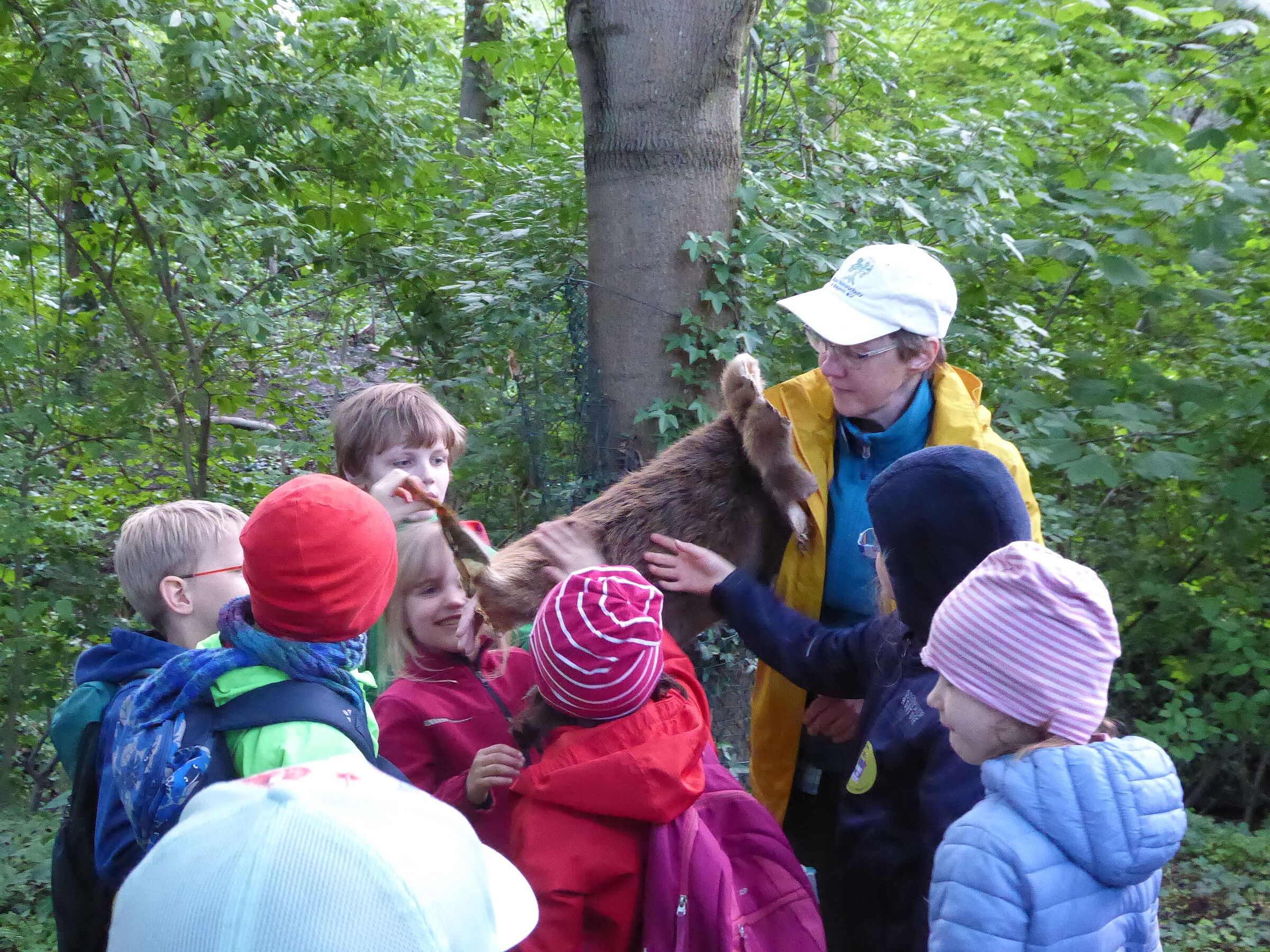 Rund um die Wöhrder Wiese gingen die angehenden Artenkennerkids auf die Suche nach Biberspuren und ließen sich dabei auch von hohem nassem Gras nicht abschrecken. Diejenigen, die bis zum Schluss ausharrten, konnten ihn tatsächlich noch bewundern: Vor der Brücke am Biberschild aalte sich der Biber im Wasser, posierte für die Fotografen in der Dämmerung ... und tauchte ab.