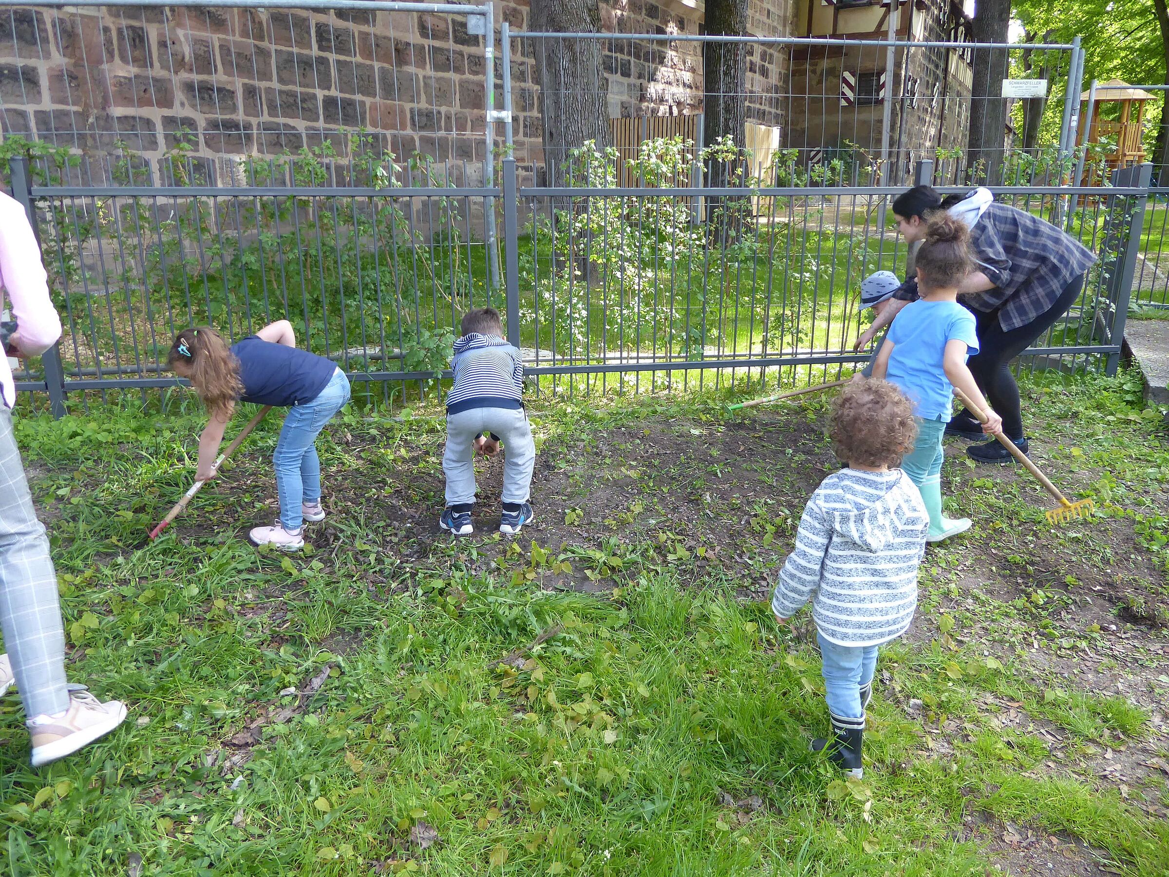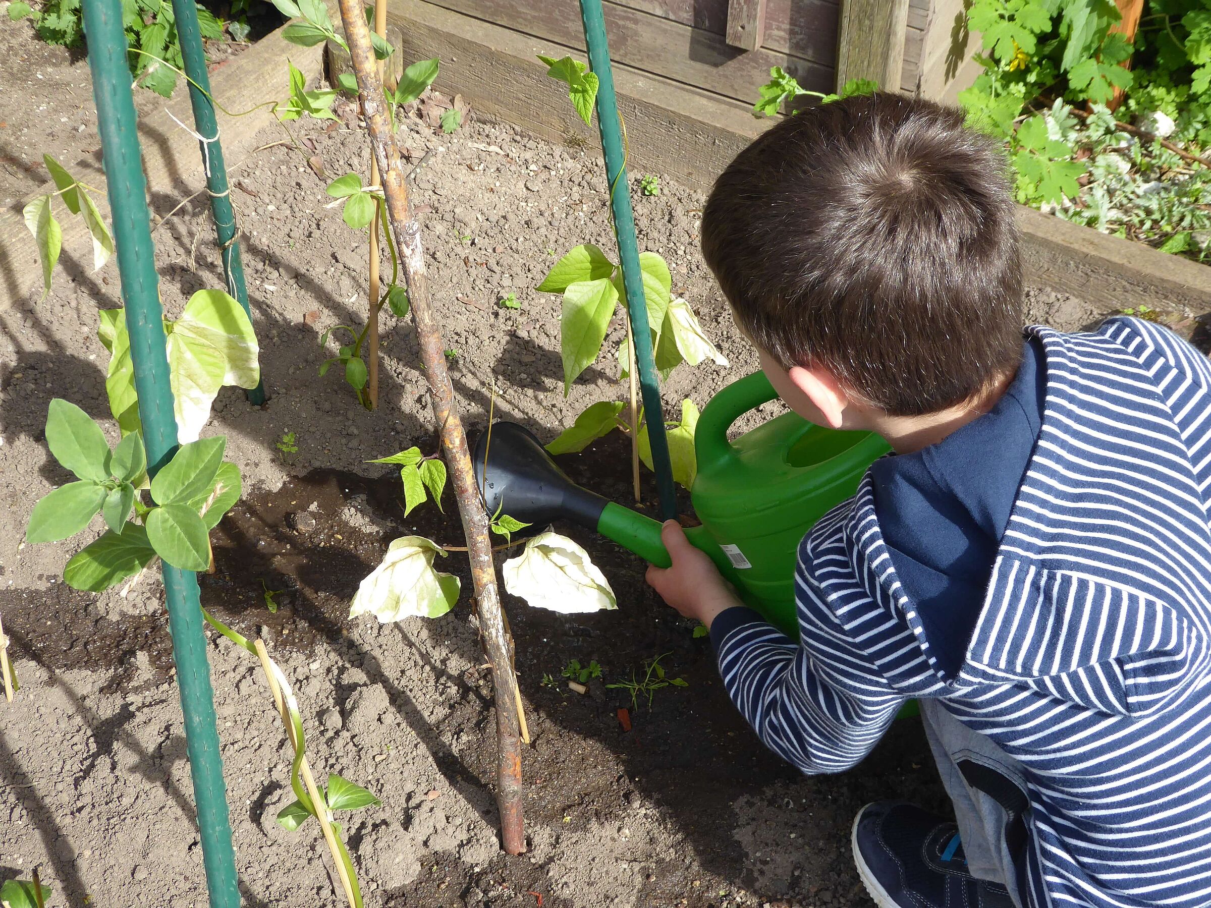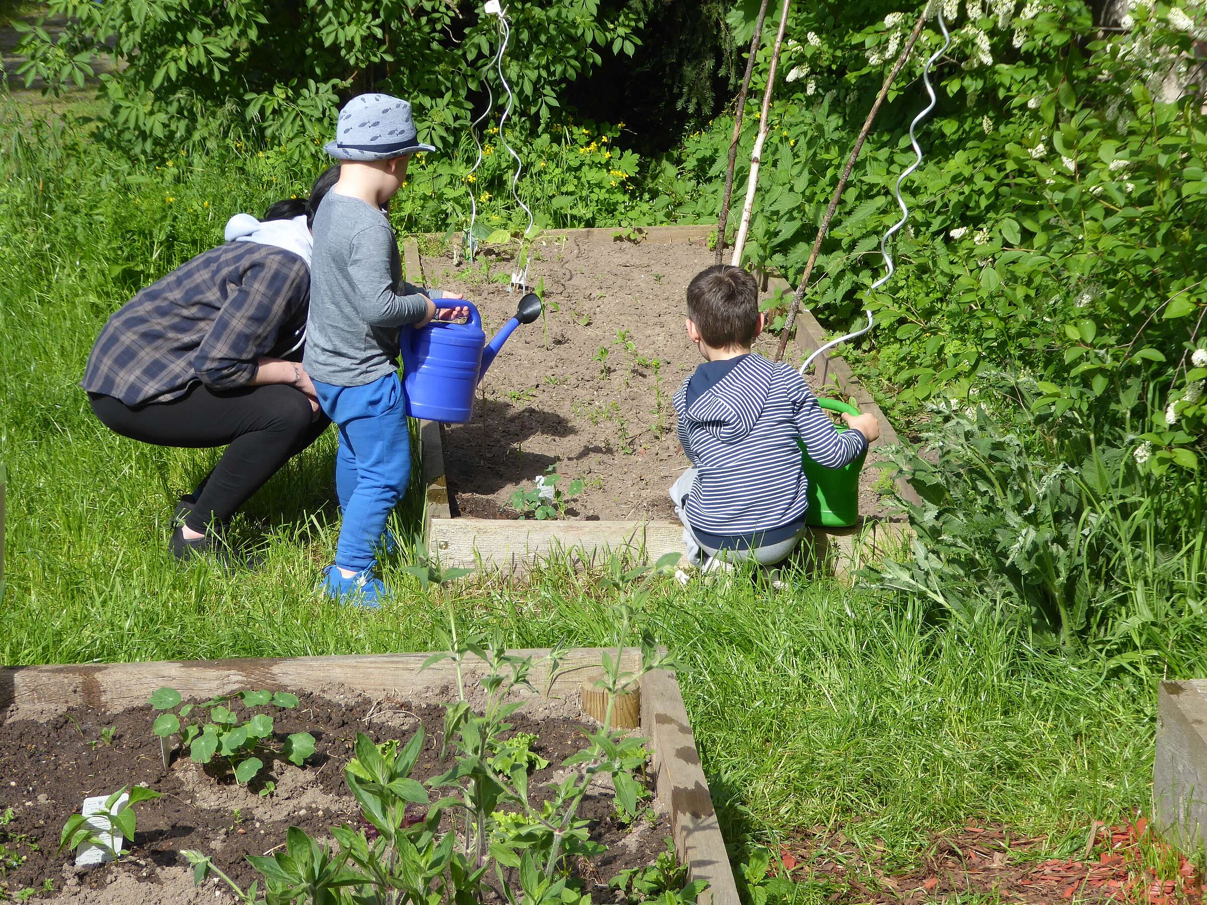 Neben den bisherigen Schulkindern können nun auch Kindergartenkinder erleben, wie viel Freude ein eigener Garten bereitet! Bei ihrem ersten Termin waren die Kinder mit Feuereifer dabei, ein Gartenstück von Beikräutern zu befreien, um dort die ersten Samen auszubringen. Aber nicht nur die eigene Aussaat ist wichtig: auch die Beete der Schulklassen wurden begeistert gegossen und Gießkannen mit Wasser geschleppt – nicht immer war klar, wer größer ist: die Kanne oder das Kind.