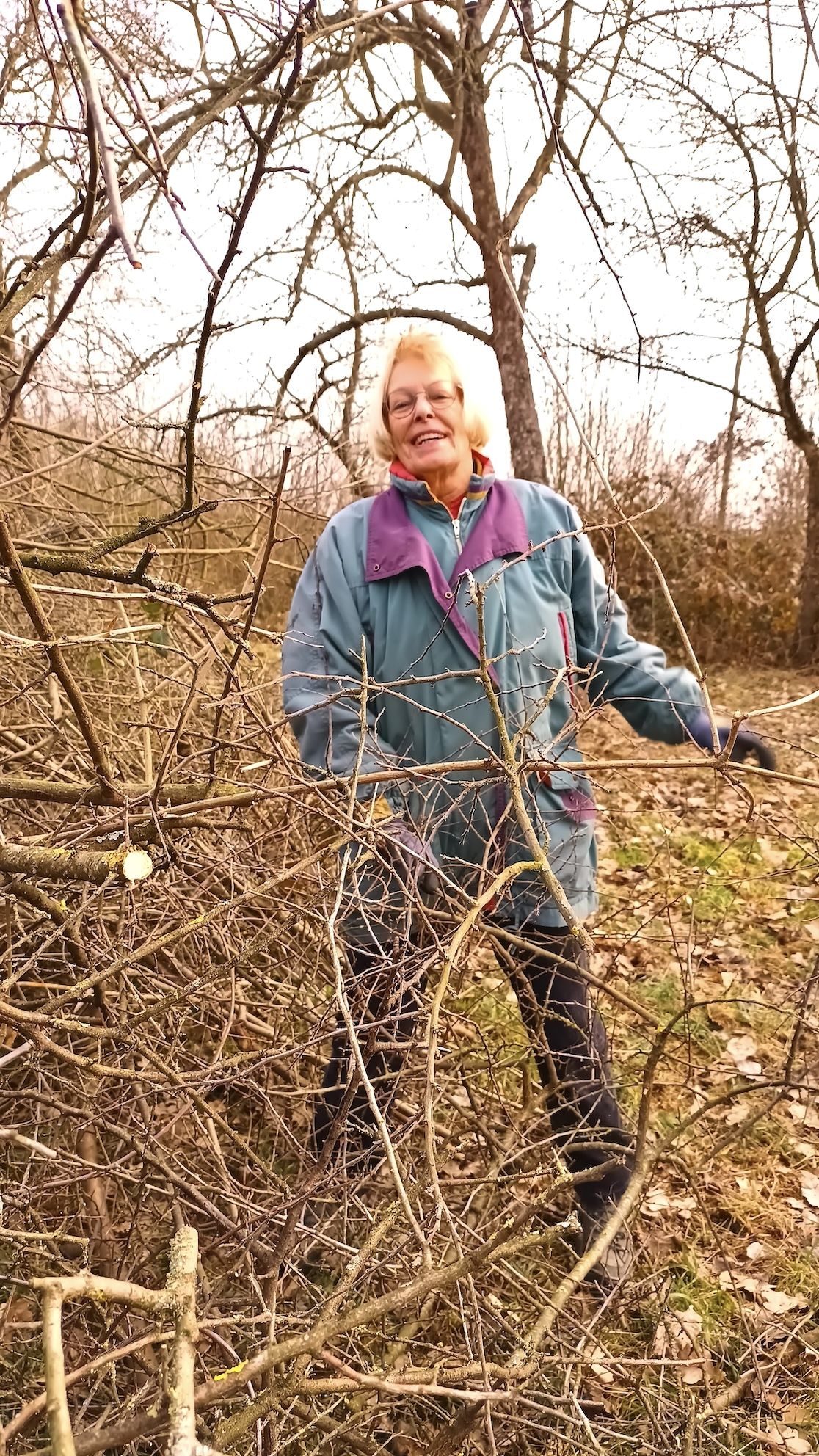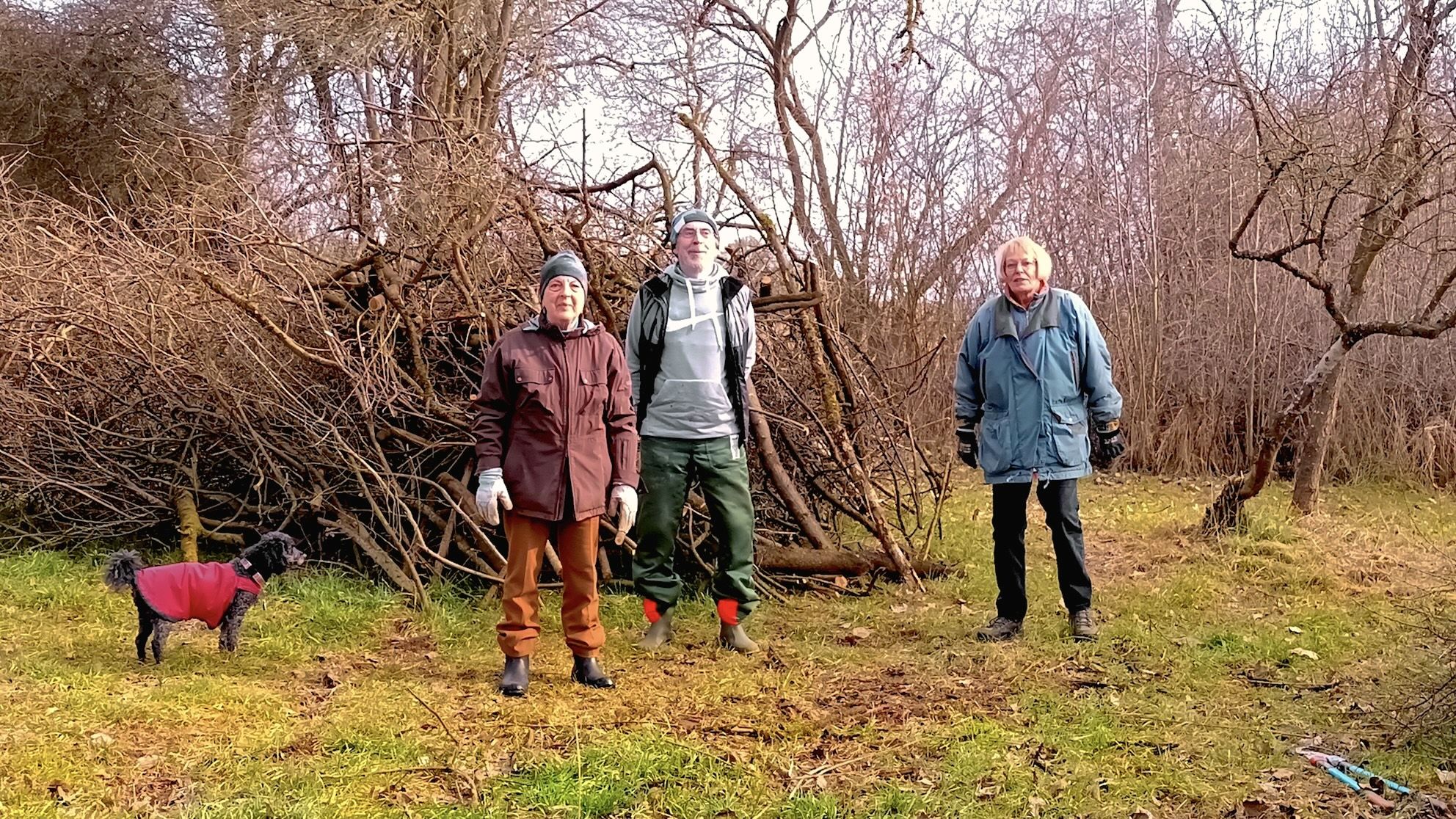Alle zusammen haben wir den Bäumen Bodenfreiheit gegeben und Zugänge freigeschnitten, soweit diese nicht mehr vorhanden waren. Die Riesenmengen an Gehölzschnitt vom letzten Jahr haben wir komprimiert und geordnet, sodass das Areal jetzt einen ganz guten Eindruck vermittelt und sich sehen lassen kann.