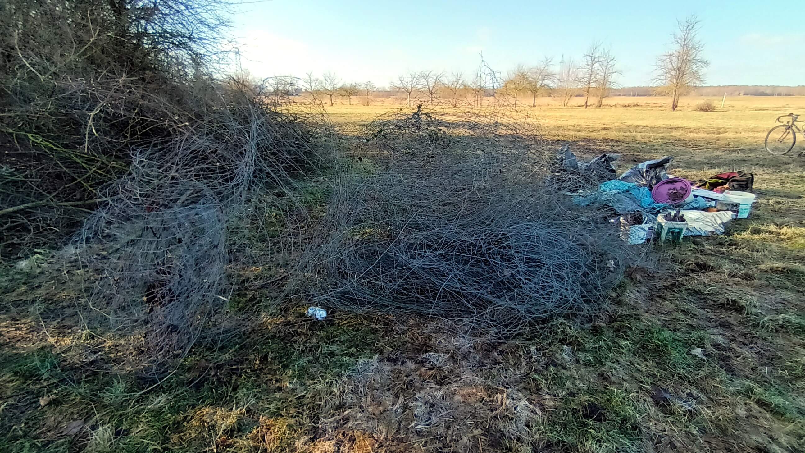 Unsere Ortsgruppe Knoblauchsland bekam im Herbst 2023 von der Stadt Nürnberg ein weiteres Biotop zur Pacht. Es ist ca. 1 Hektar groß und südwestlich von Großgründlach gelegen. Vorgefunden haben wir eine verwilderte Obstbaumwiese und ein Wäldchen. Nun galt es einen alten, in Hecken eingewachsenen Drahtzaun zu beseitigen und das Grundstück von alten Paletten und anderem Abfall zu reinigen.