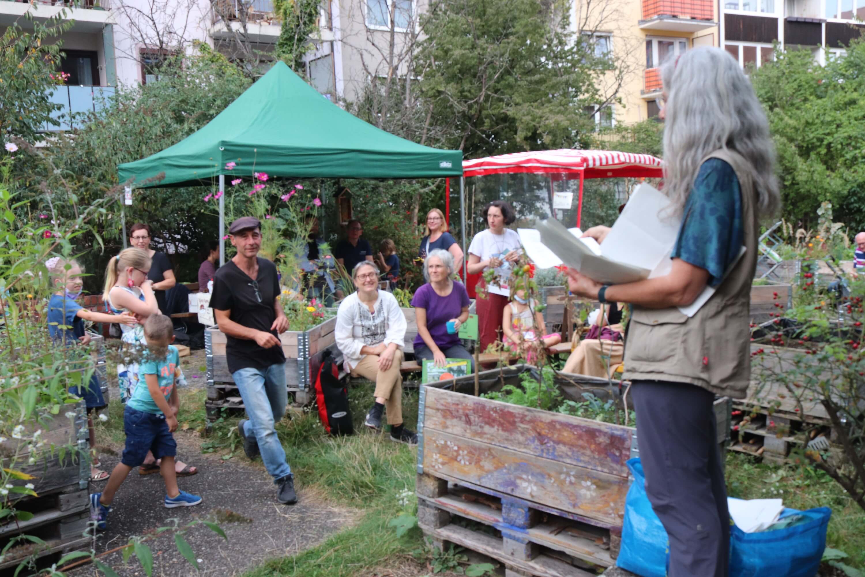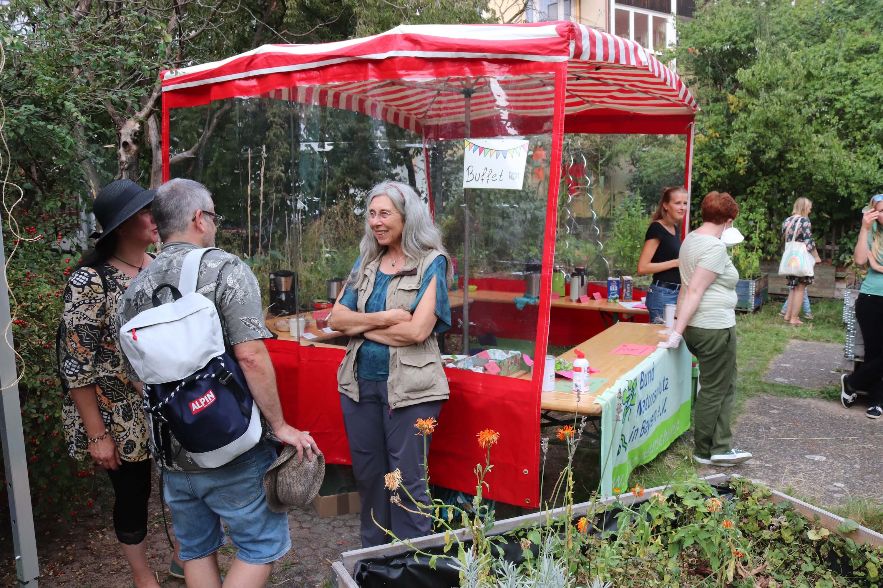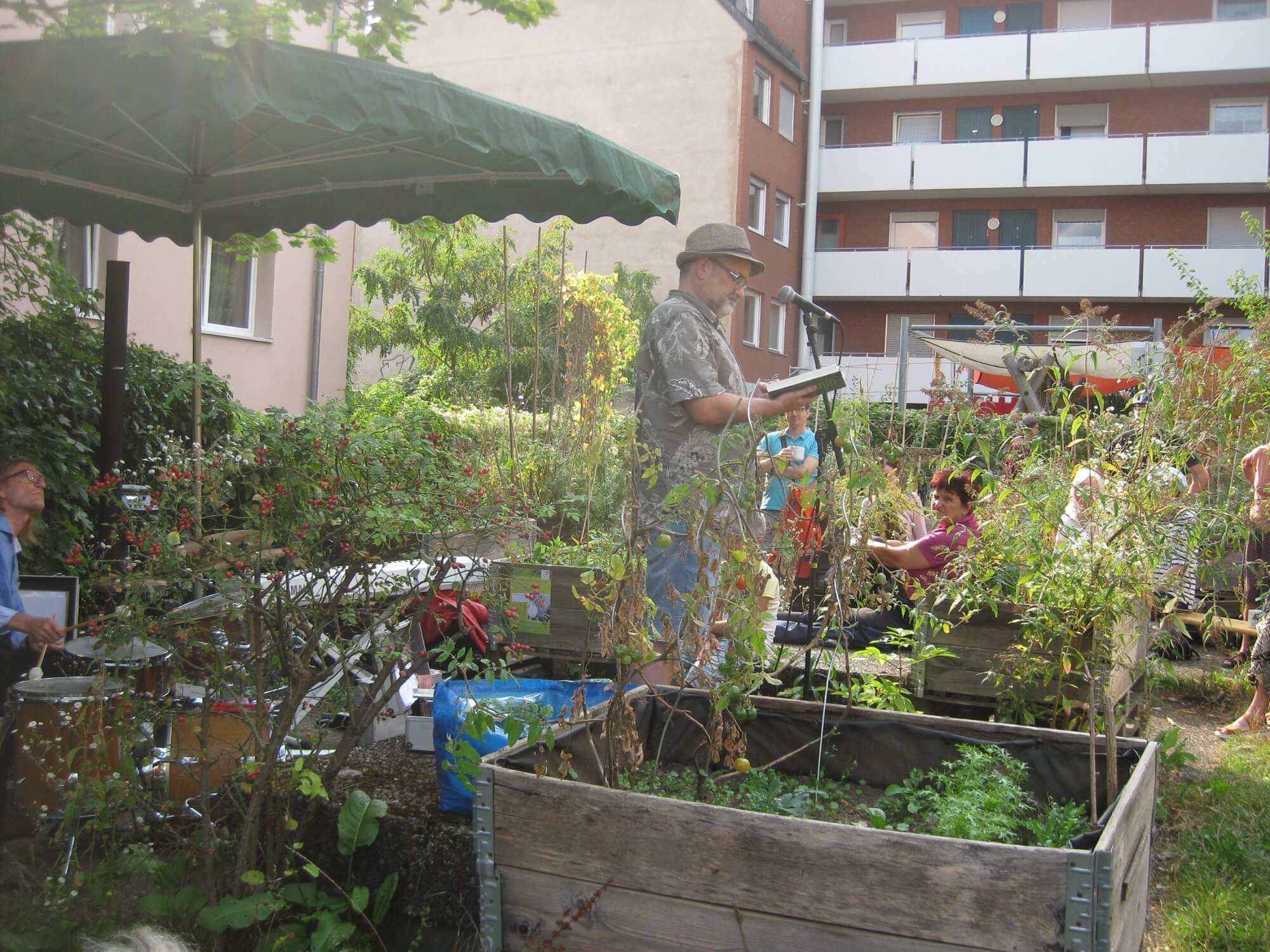 Besonders glücklich waren wir darüber, dass die Tastentigerin Hildegard Pohl und der Traumtrommler Yogo Pausch das Fest den ganzen Nachmittag über musikalisch begleitet haben. Die Feier endete mit gemeinsamer, spontaner Dschungelmusik der beiden mit Rainer Edelmann.