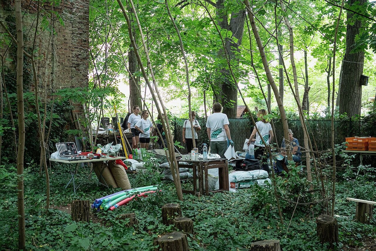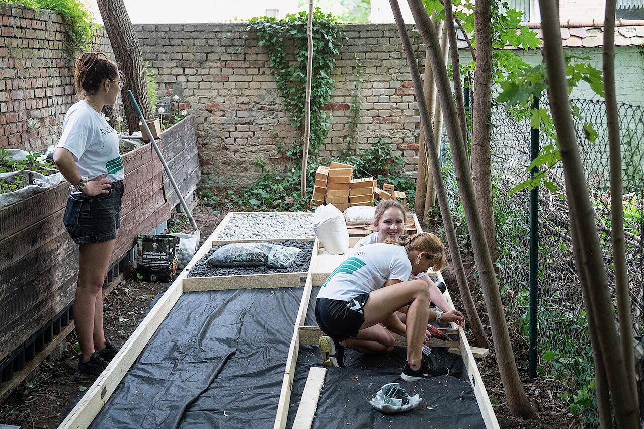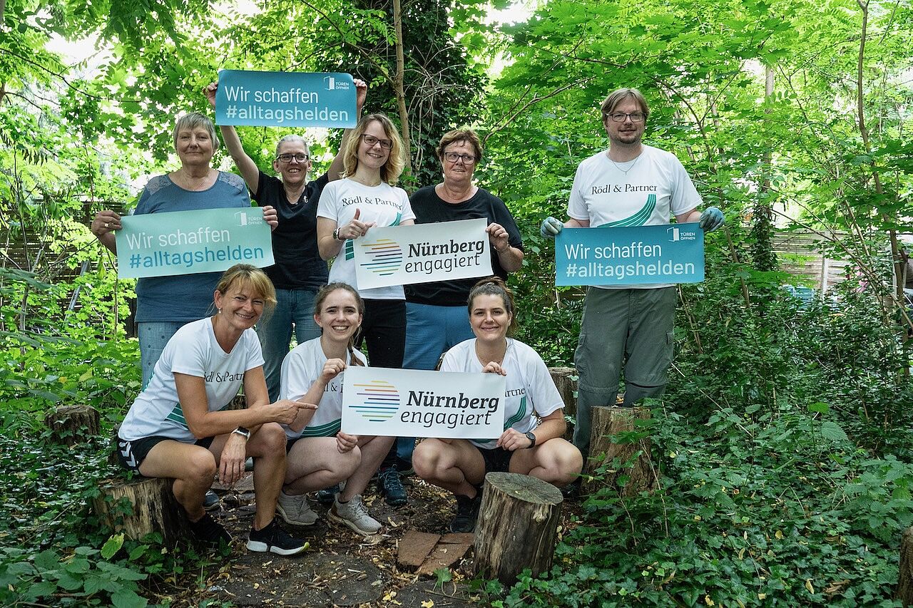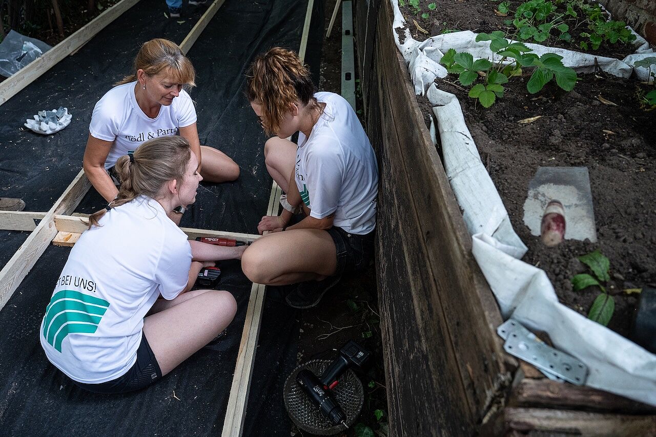Diesmal kam ein Team von Rödel & Partner ins Grüne Zimmer und legte mit uns einen Barfußpfad an.