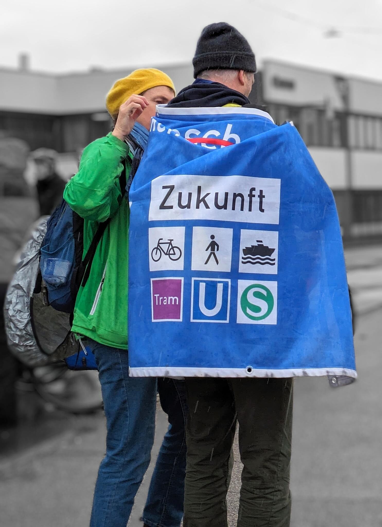 Danach sind wir gemeinsam mit unseren Bündnispartnern auf dem Frankenschnellweg einige Protestrunden geradelt, gegen dieses völlig aus der Zeit gefallene Projekt. Drei Runden zwischen Schwabacher Straße und Rothenburger Straße, wo sich einst niemand die Mühe gemacht hat, wenigstens irgendwo einen Geh- und Radweg vorzusehen, und auch später keiner mehr ergänzt wurde. Trotz erfolgter Versammlungsanzeige kam allerdings nicht einmal die Polizei vorbei. Die war anscheinend weniger flexibel und reaktionsfähig als das Bündnis gegen den kreuzungsfreien Ausbau des Frankenschnellwegs ...