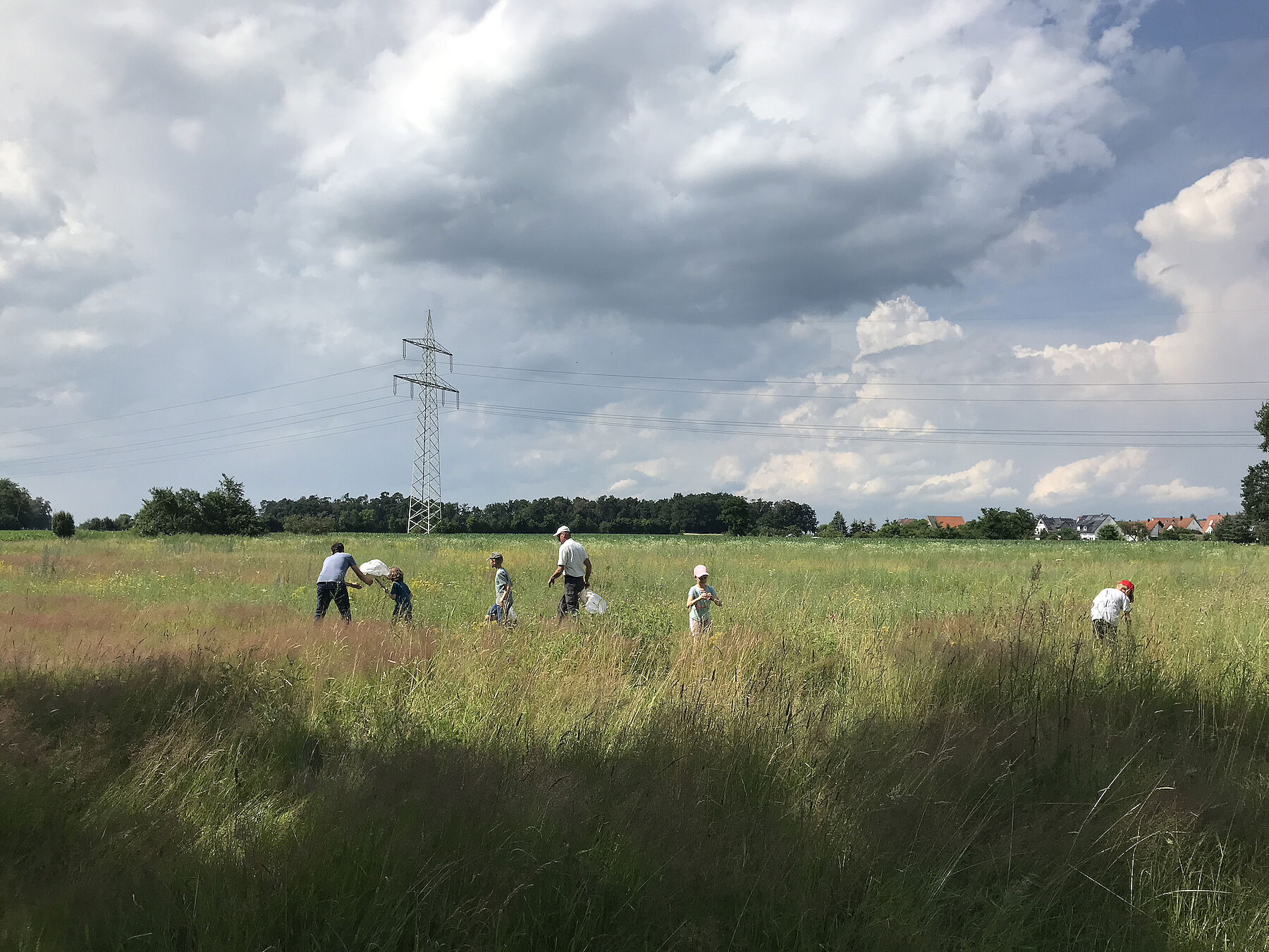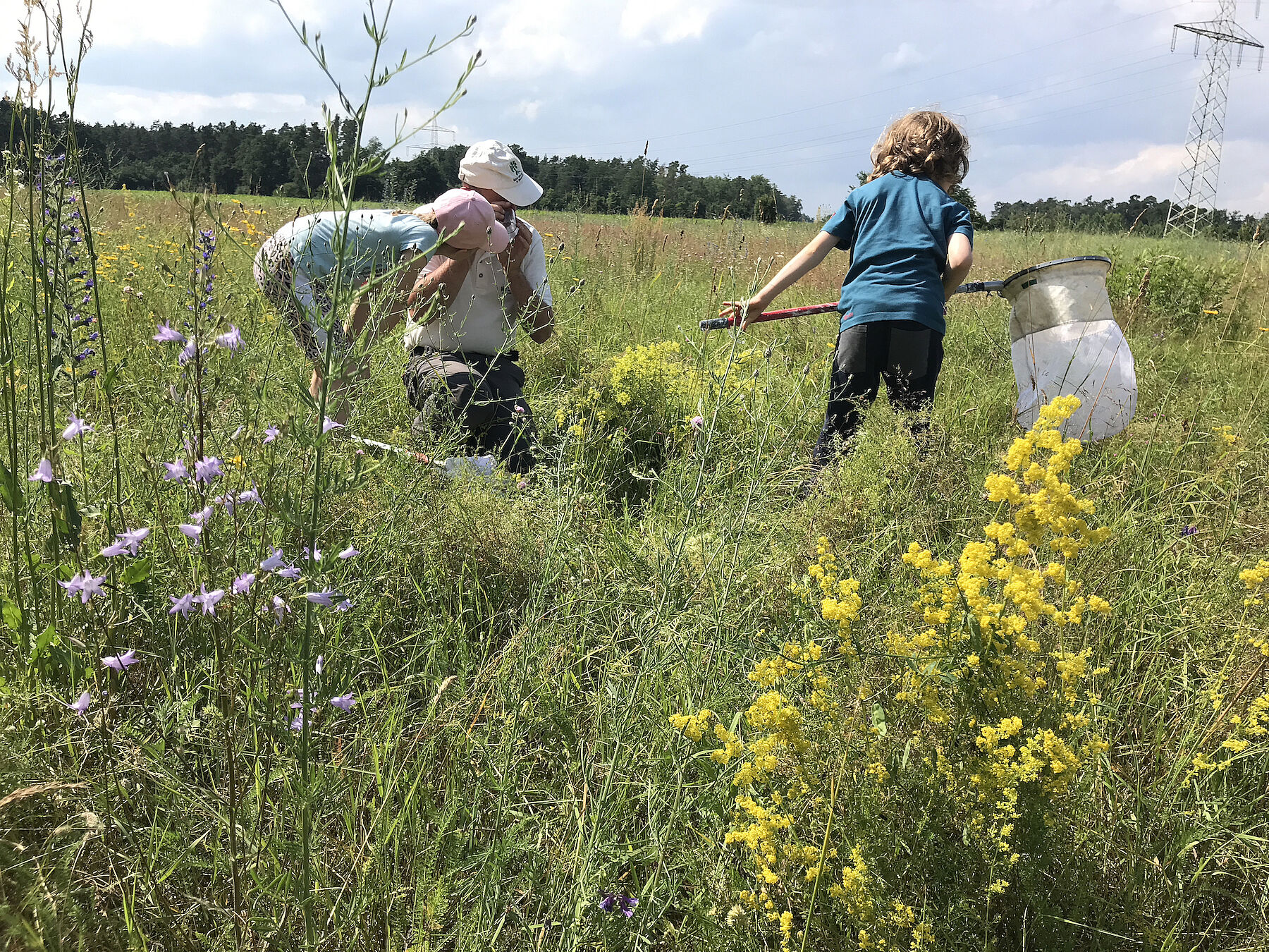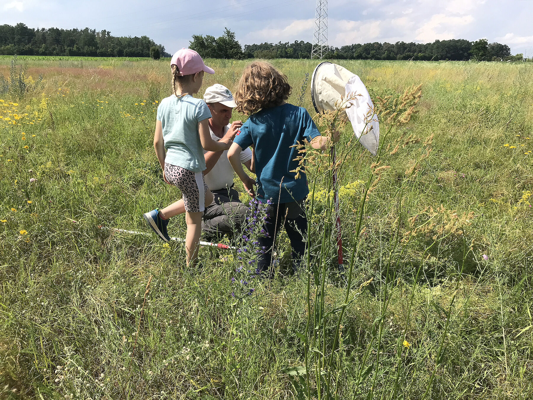 Ein Junge ist mit seinem Vater kescherschwingend den Heuschrecken hinterhergesprungen. Zwei andere haben sich schnell nicht mehr mit den Gemeinen Grashüpfern abgegeben, sie wollten nur noch Seltenes fangen. Was ihnen dann auch tatsächlich gelungen ist!