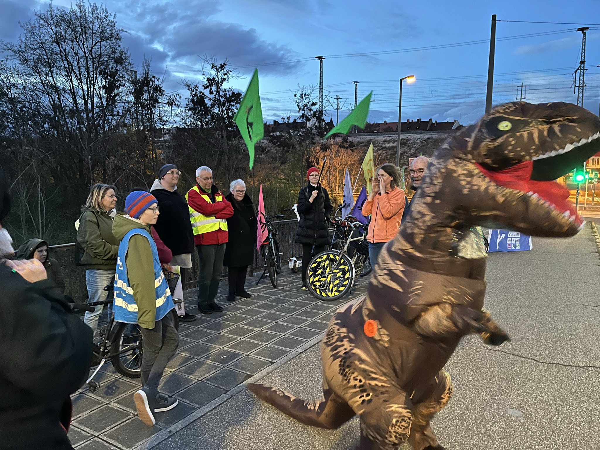 Den verantwortlichen Politikern muss die Unverantwortlichkeit dieses immer absurder werdenden Projektes deutlich gemacht werden, damit endlich die Hebel auf Nachhaltigkeit, Klimaschutz und lebenswerte Stadt umgelegt werden. Deshalb demonstrierte das Bündnis aus verschiedenen Umweltschutz-Organisationen am Folgetag nochmals gemeinsam auf dem Fahrrad gegen die klimaschädlichen Pläne. Nach einer kurzen Kundgebung an der Schwabacher Straße, auf der Brücke über den alten Kanalhafen, starteten diesmal Aktive verschiedener Gruppen Richtung Jansenbrücke. Auf dem Frankenschnellweg Richtung Fürth ging es zur nächsten Ausfahrt, wo sie kehrt machten und wieder zurück fuhren.