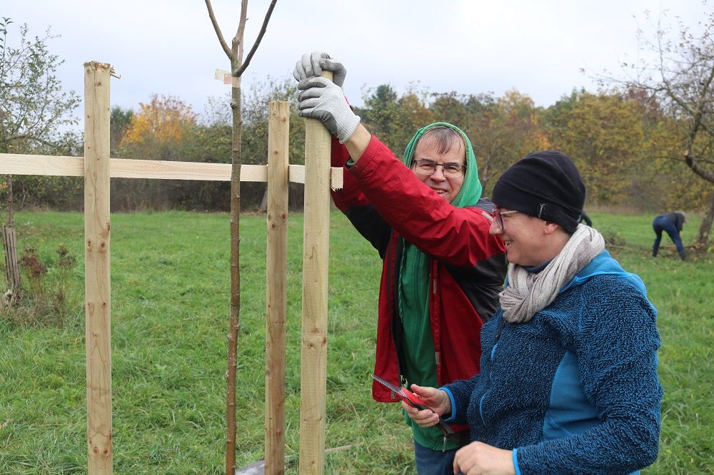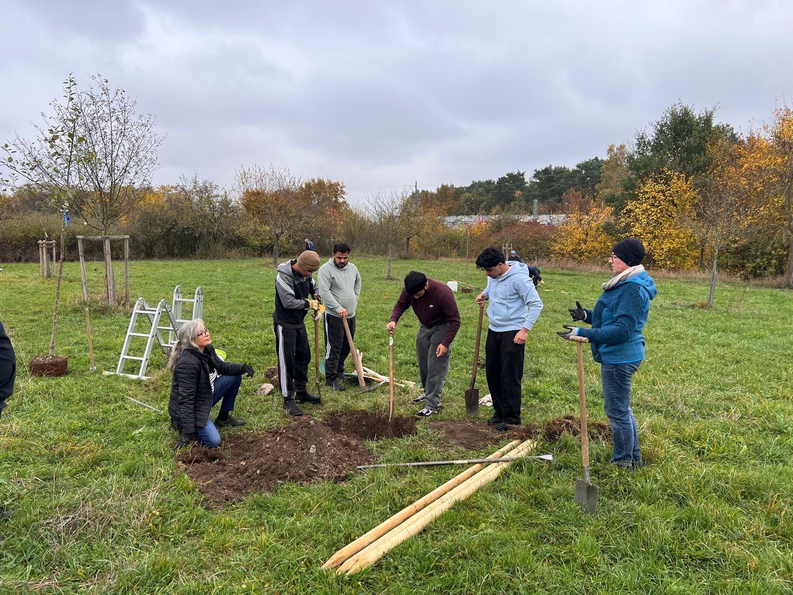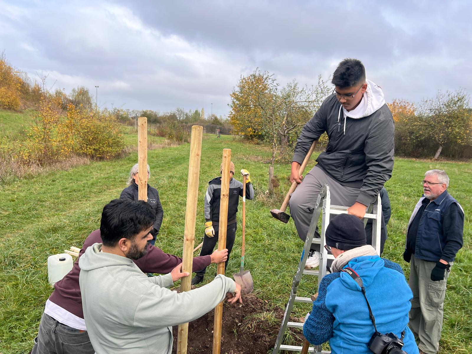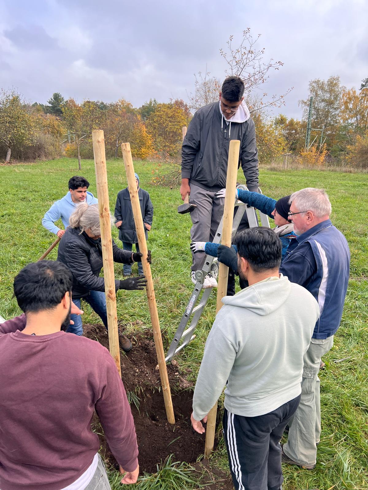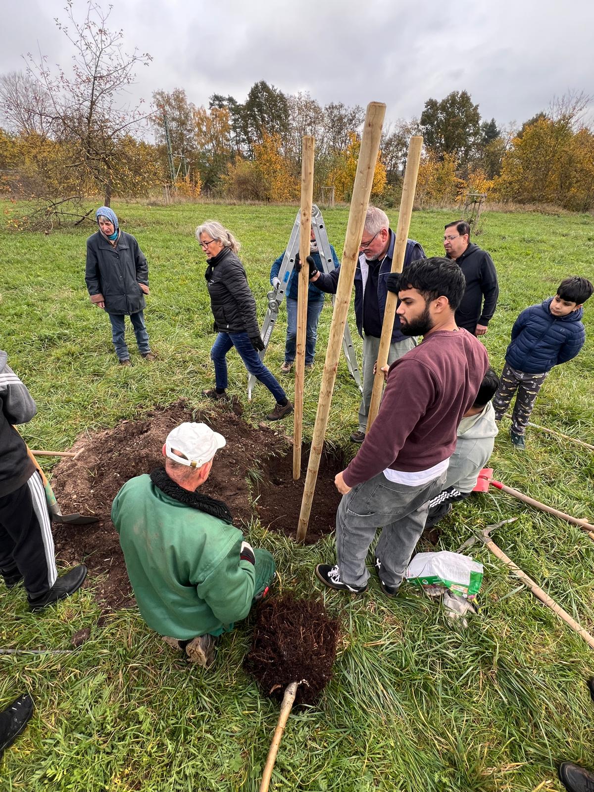 Seit genau zehn Jahren betreut der BUND Naturschutz zusammen mit der Ahmadiyya Muslim Jamaat (AMJ) die wertvolle Streuobstwiese östlich des Schweinauer Bucks. Jedes Jahr wurde von den Aktiven eine Reihe von Bäumen gepflanzt. Auch dieses Jahr stiftete die Gemeinde fünf Apfelbäume. Gemeinsam teilen sich der BN und die AMJ-Aktiven auch die Kosten der Pflanzung. Dieses Jahr war zudem wieder die Frauenorganisation der Ahmadiyya-Gemeinde mit einer Baumpflanzung engagiert. Das wichtige interkulturelle Projekt zeigt eindrucksvoll, wie sich eine vielfältige Stadtgesellschaft gemeinsam um Grünflächen kümmern kann.