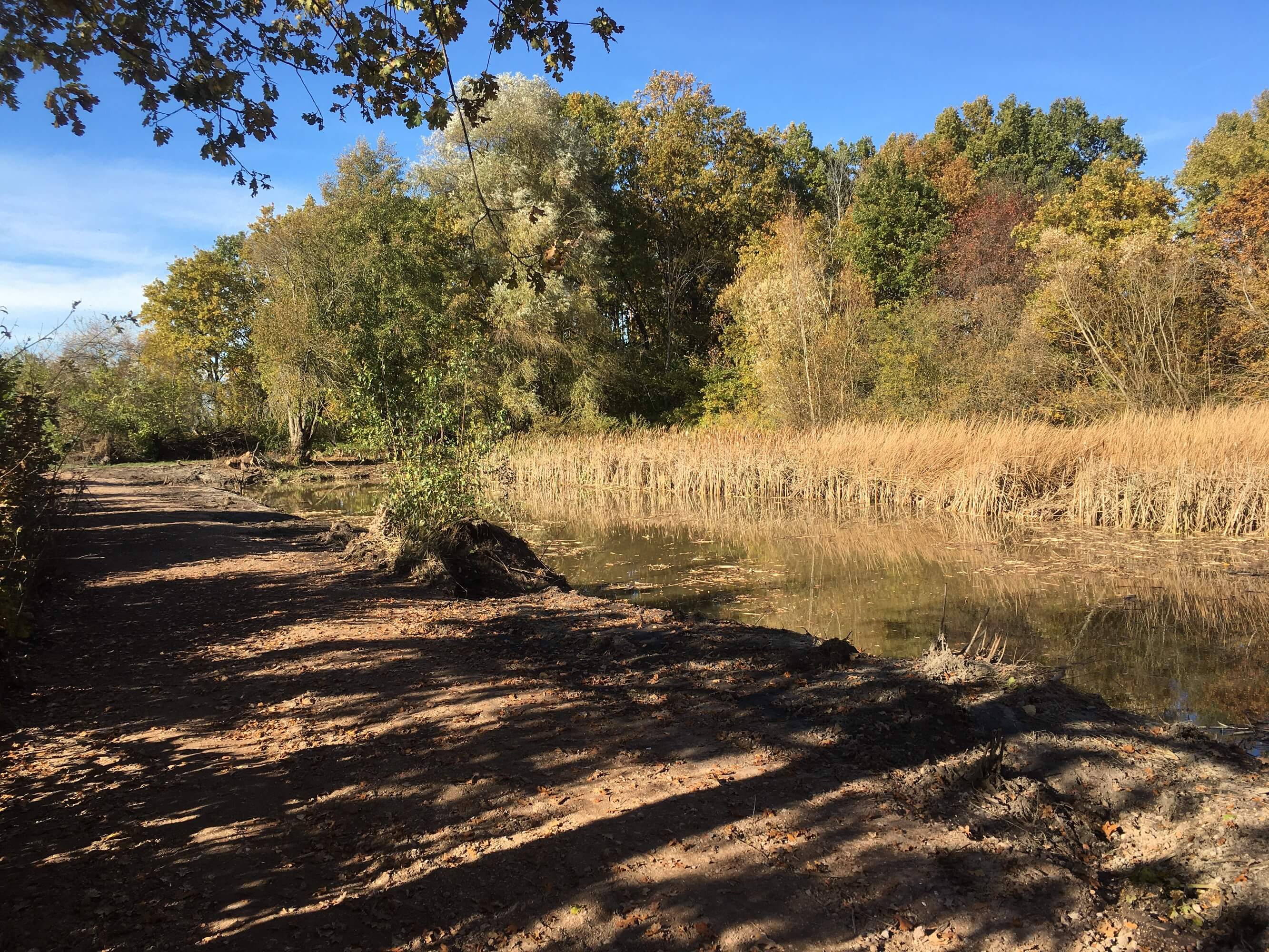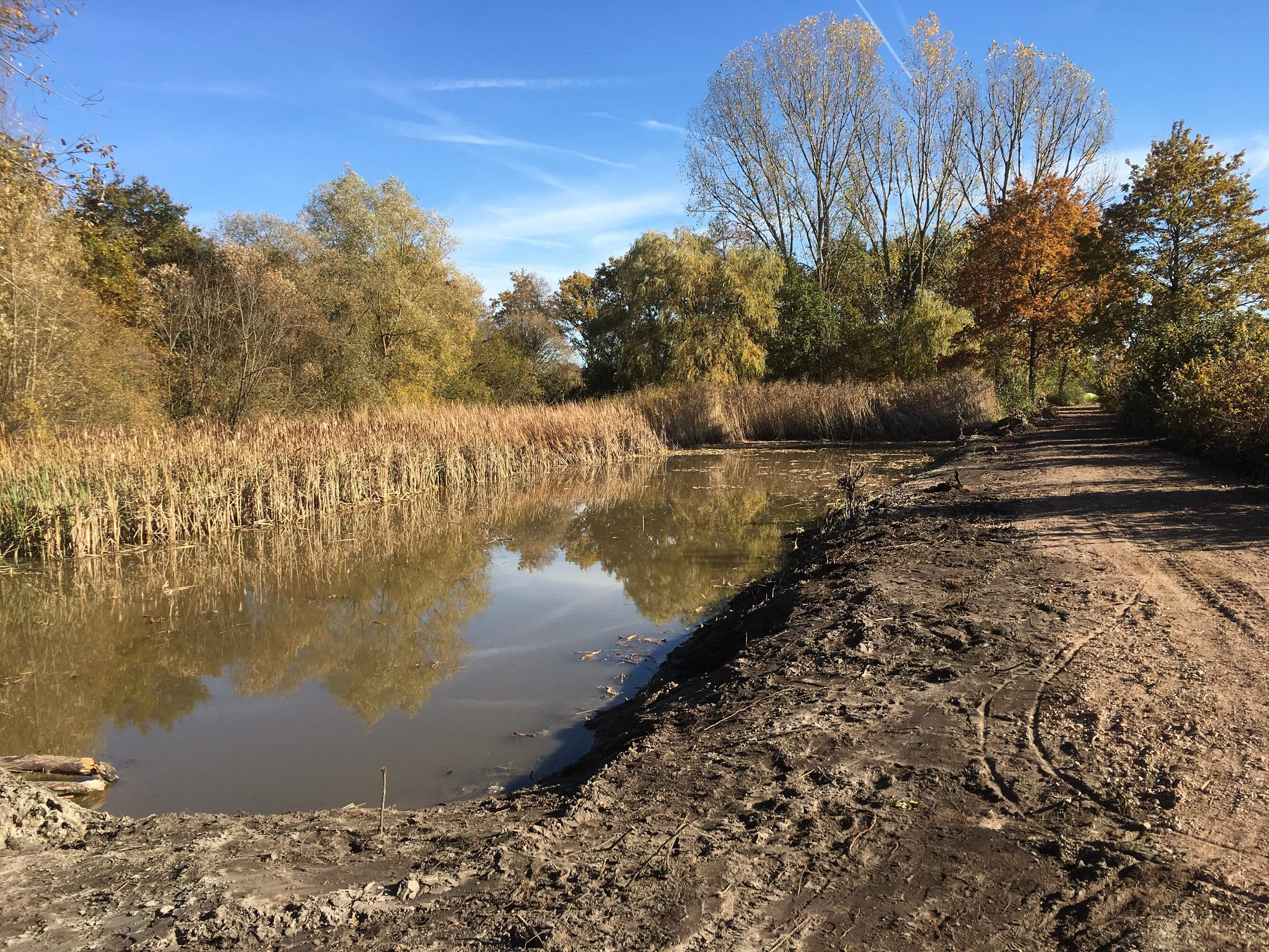 Am 2. Oktober 2021 fand der jährliche Arbeitseinsatz im Reutleser Biotop statt, bei dem der südliche Uferbereich bereits stark zurückgeschnitten wurde, um die anstehenden Baggerarbeiten zu ermöglichen. Das Ausbaggern wurde kürzlich vorgenommen und es bietet sich nun ein ganz neues Bild.
