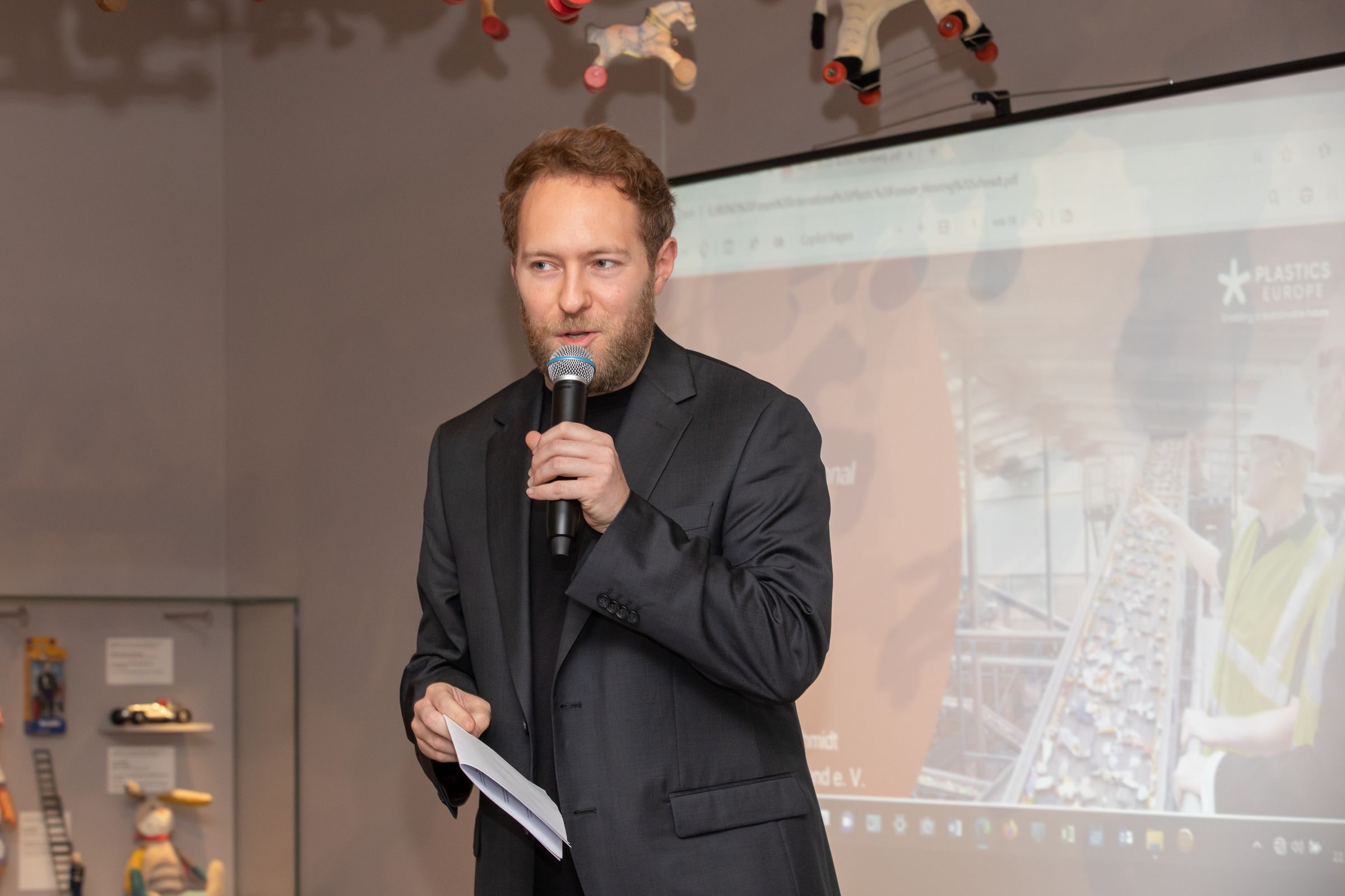 Nach der Begrüßung durch die Gastgeberin, die Leiterin des Spielzeugmuseums Dr. Karin Falkenberg, und durch den Vorsitzenden des BUND Naturschutz Nürnberg, Klaus-Peter Murawski, wurden Ausschnitte aus dem Film „Plastic Fantastic” gezeigt. Die anfänglichen technischen Schwierigkeiten überbrückte Lukas G. Schlapp, Volontär des Verlags Nürnberger Presse, der die Moderation des Abends übernommen hatte, mit Bravour.