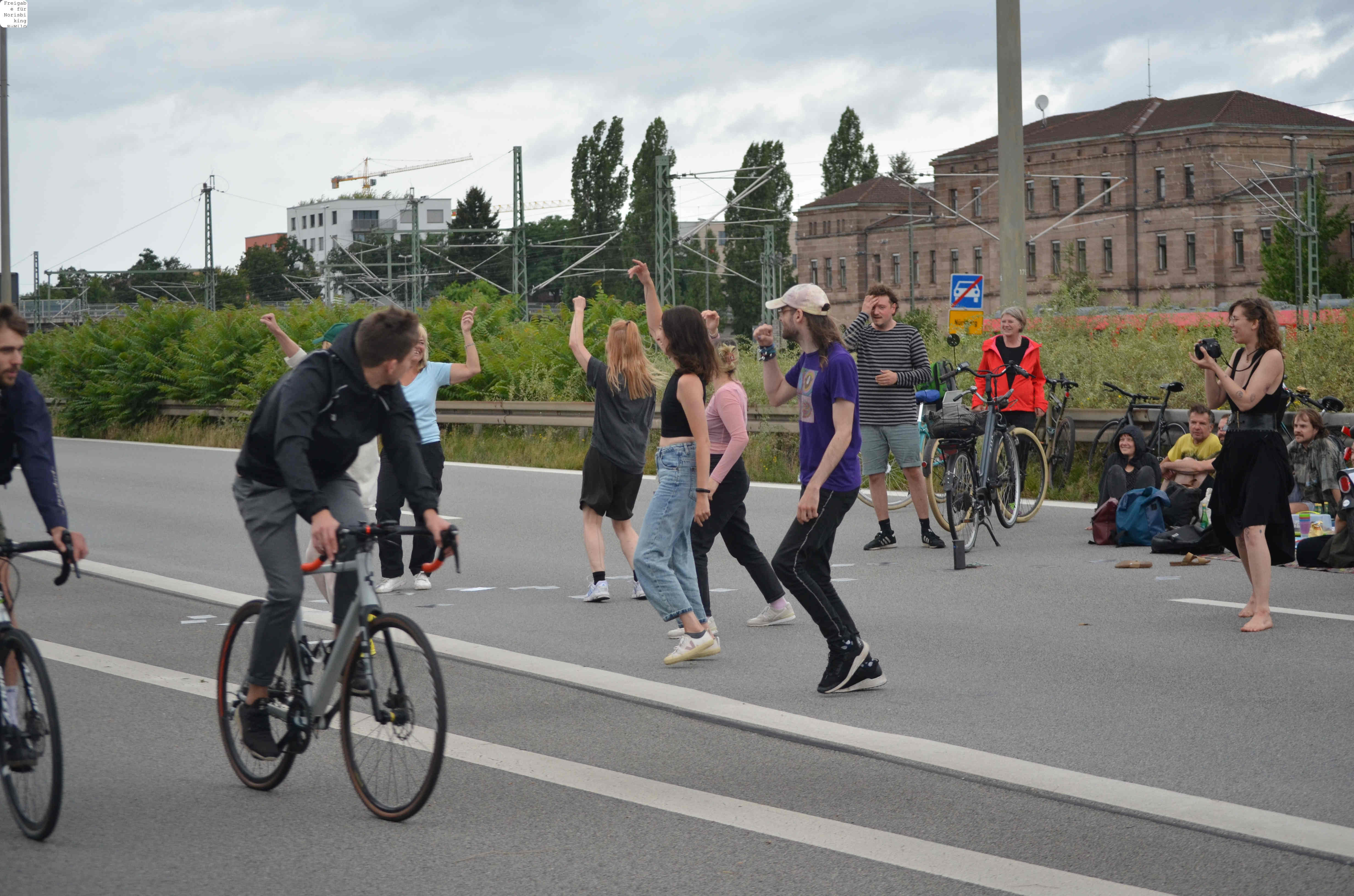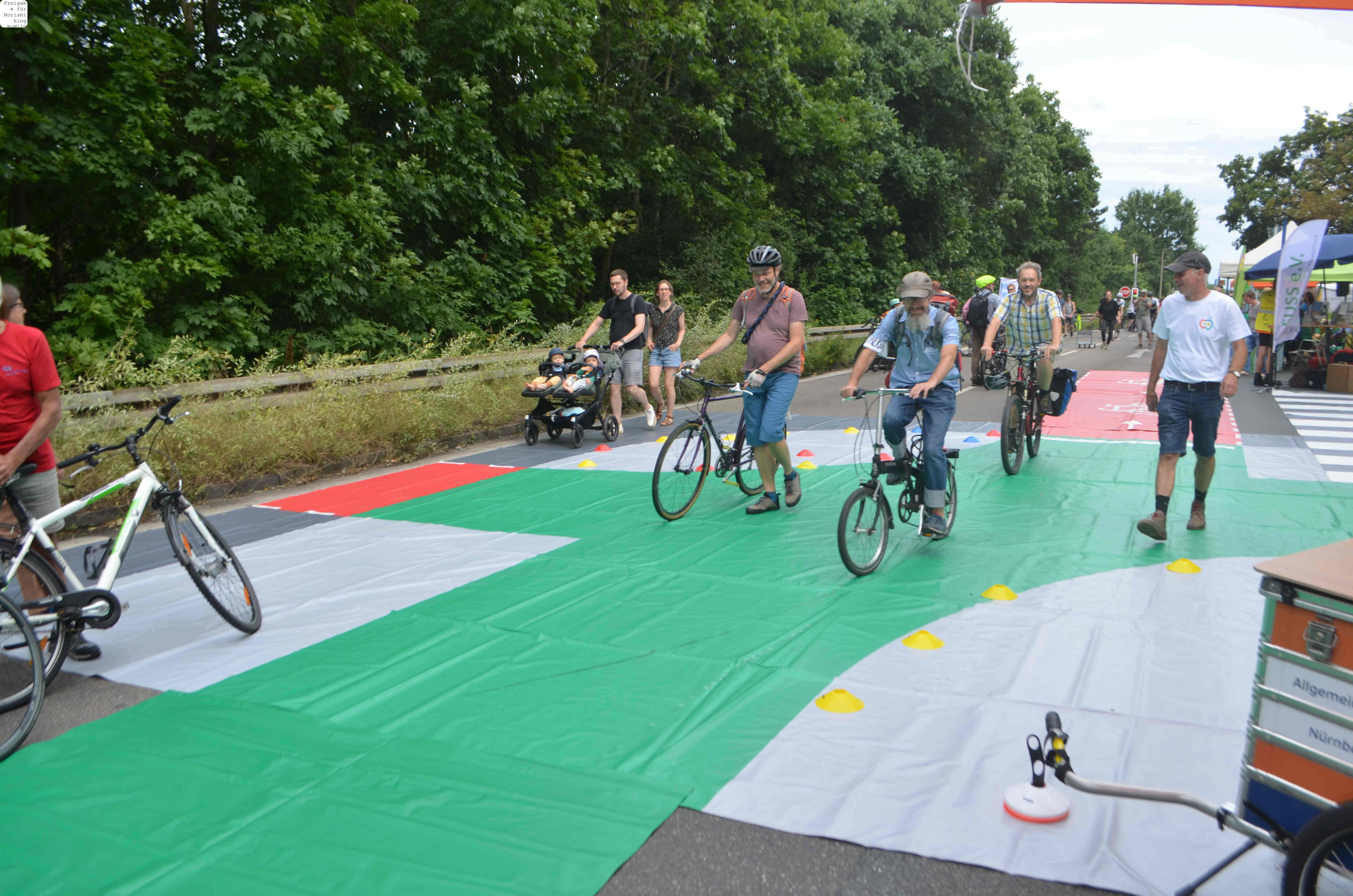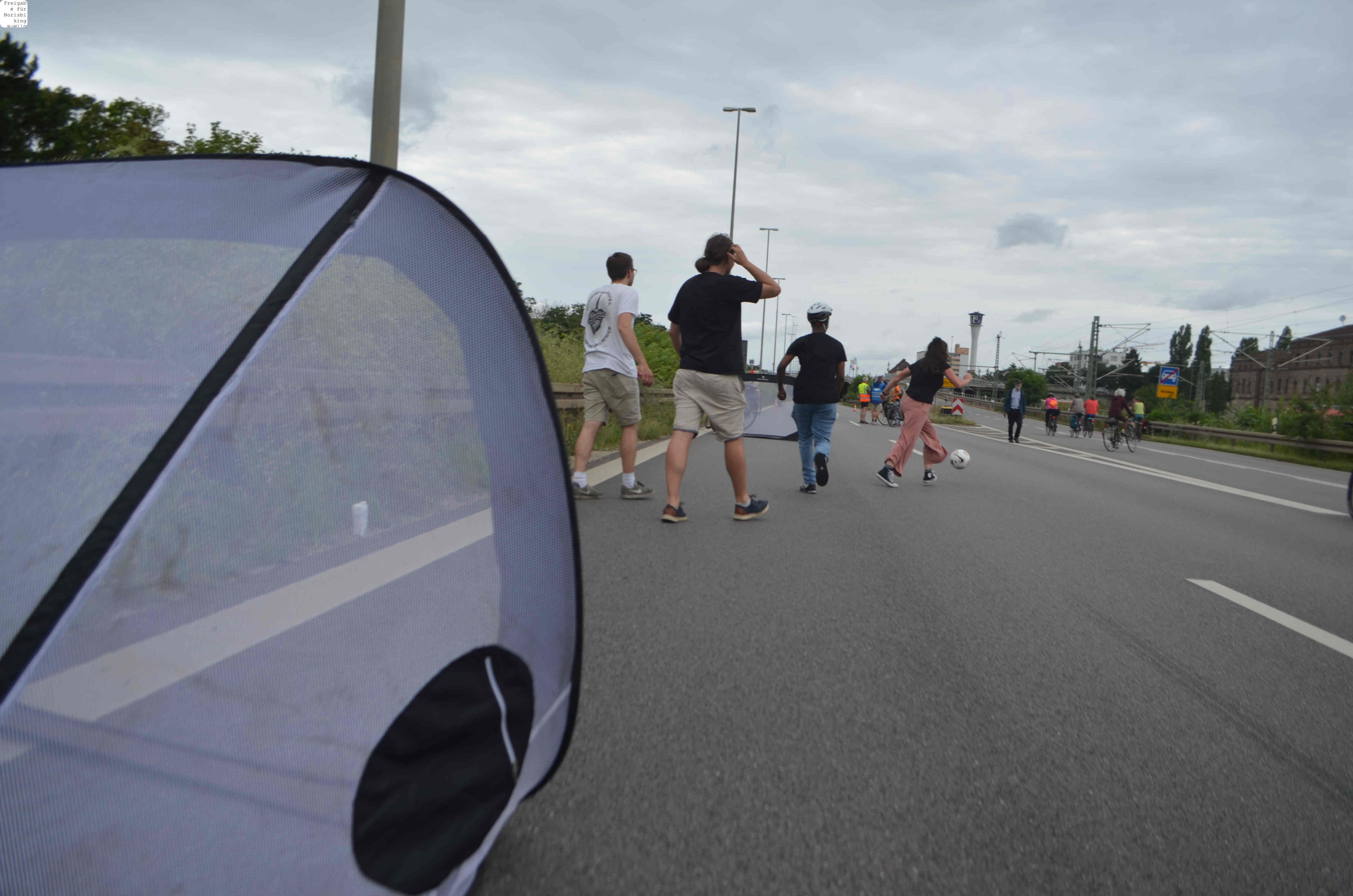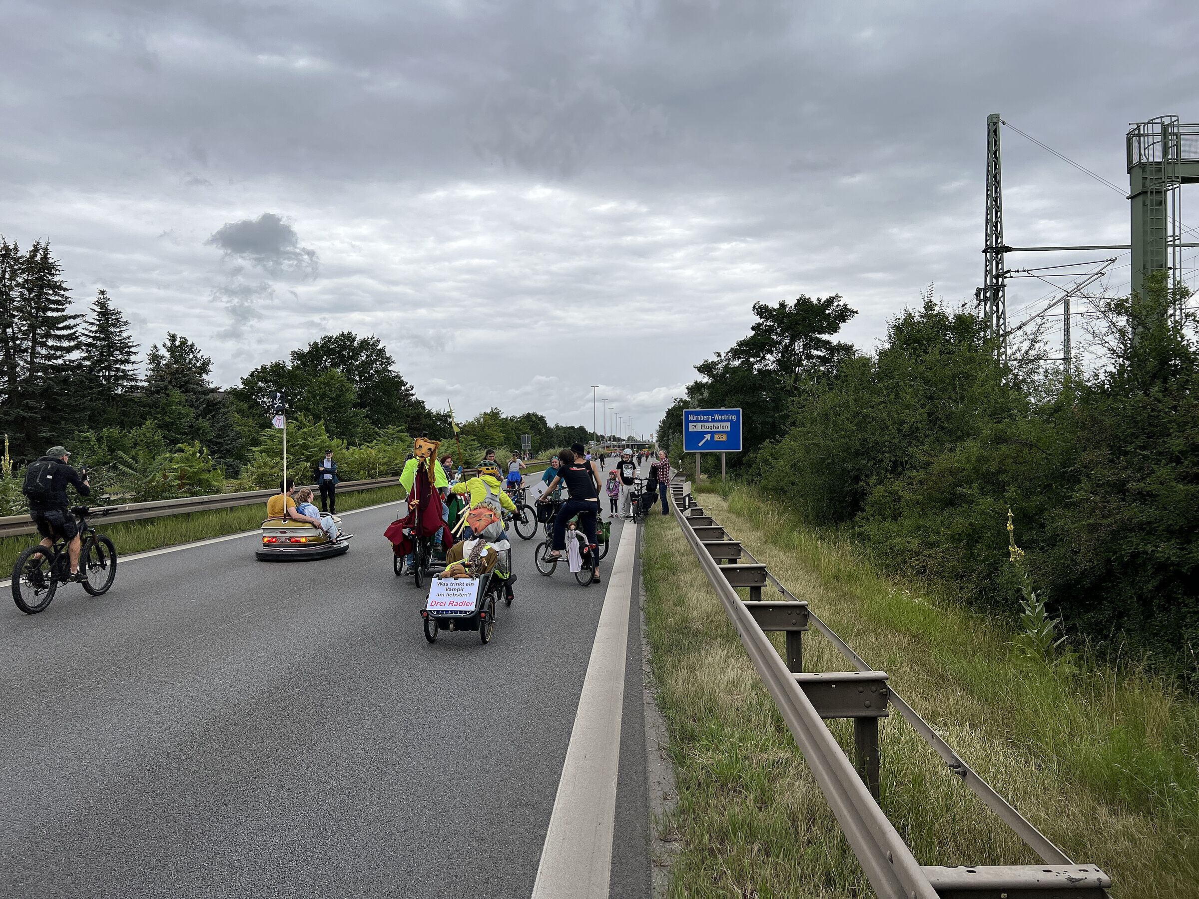 Jegliche Diskussion bereits im Keim zu ersticken, den Stadtrat ungeniert als kostenlose Werbebühne missbrauchen, beschränkt die öffentliche und politische Willensbildung. Der Bedarf größerer Aktionen, um einen offenen und demokratischen Diskurs voranzubringen, war daher offensichtlich. So entstand die Idee eines ausgiebigen Runden-Radelns für das Aus der Norisring-Rennen. Da der Norisring trotz der frühzeitigen Versammlungsanmeldung schon im August 2023 nicht zur Verfügung gestellt wurde, musste das sich bildende große Aktionsbündnis auf den Frankenschnellweg ausweichen, wodurch die Ausbau-KritikerInnen auch gleich mit im Boot waren. Dort fand nun am ersten Juli-Wochenende gesundes, klimafreundliches und inklusives Runden-Drehen statt – für ein lebenswertes Nürnberg. Und für eine nachhaltige Stadtentwicklung, bei der die Klimaanpassung und die Mobilitätswende, also wesentliche Grundlagen für die Zukunft Nürnbergs, zentral sind.