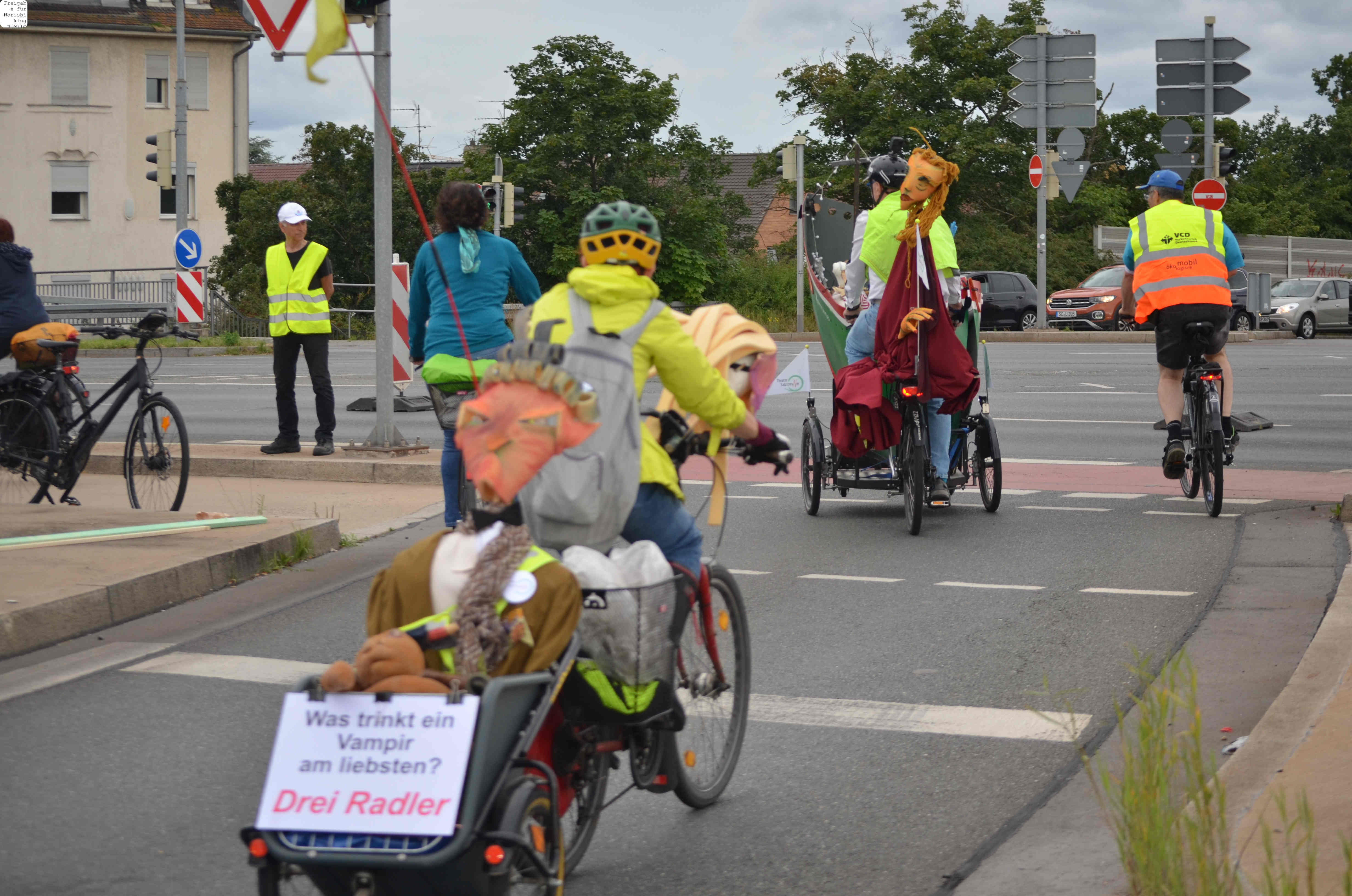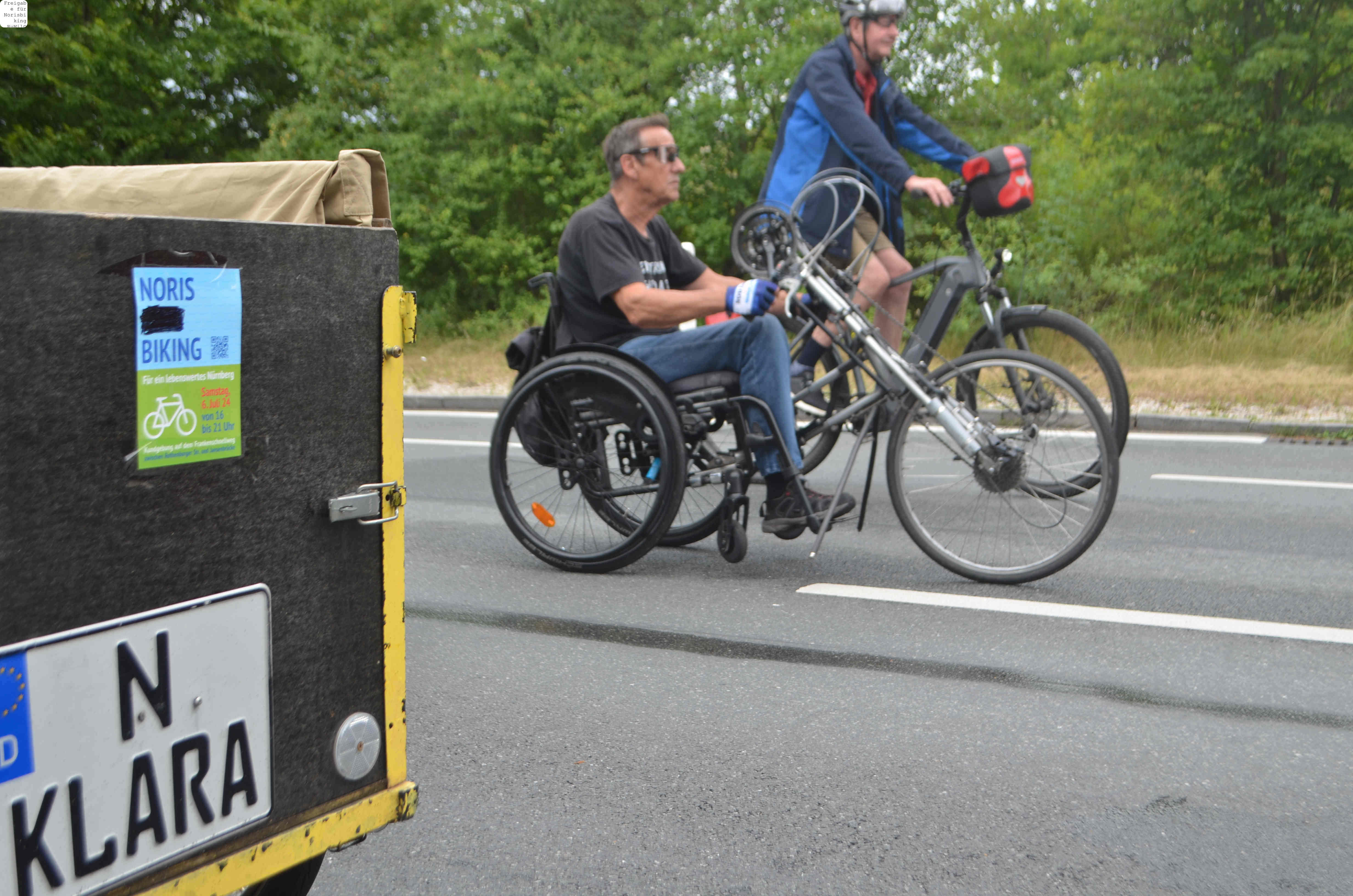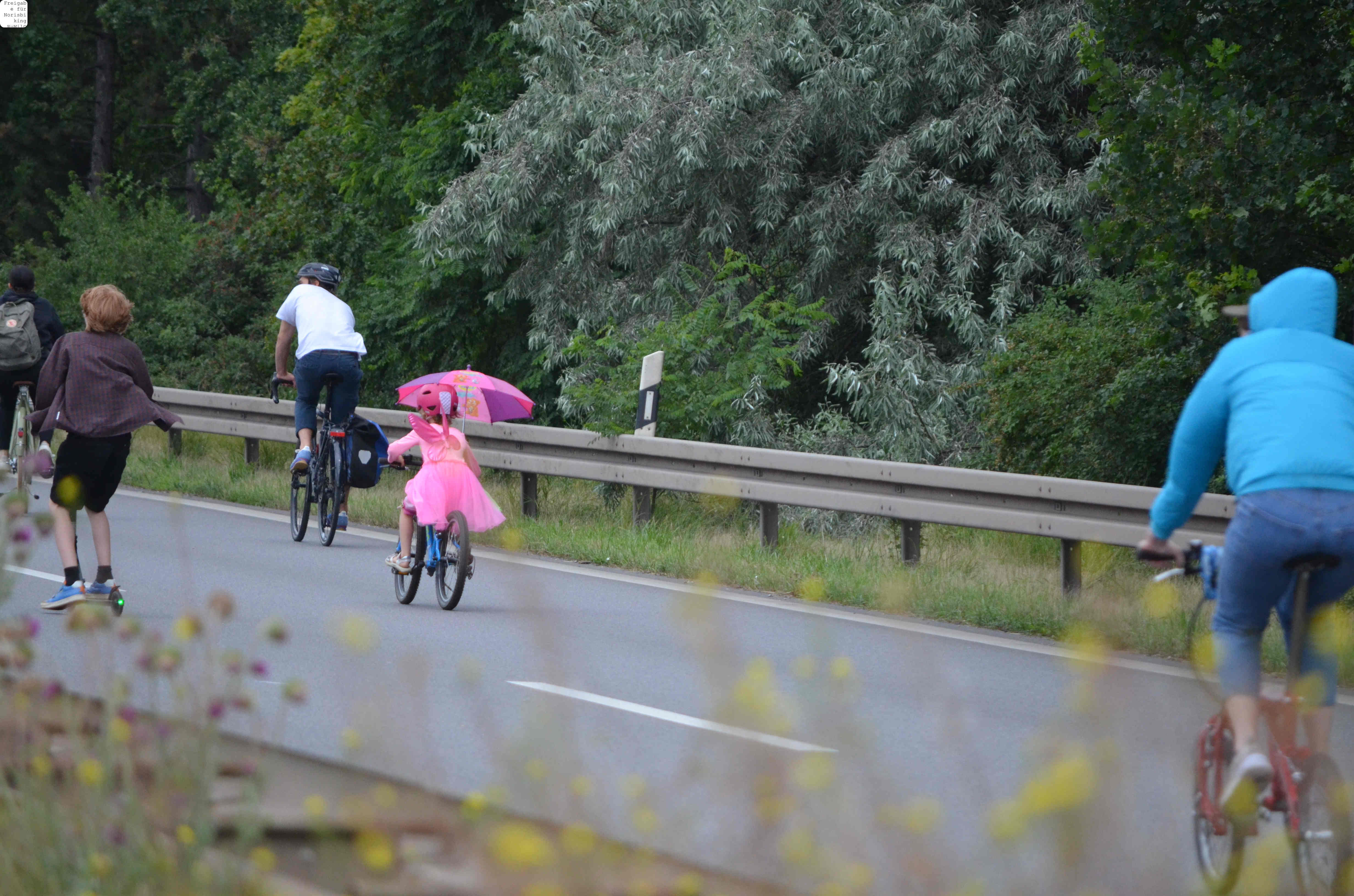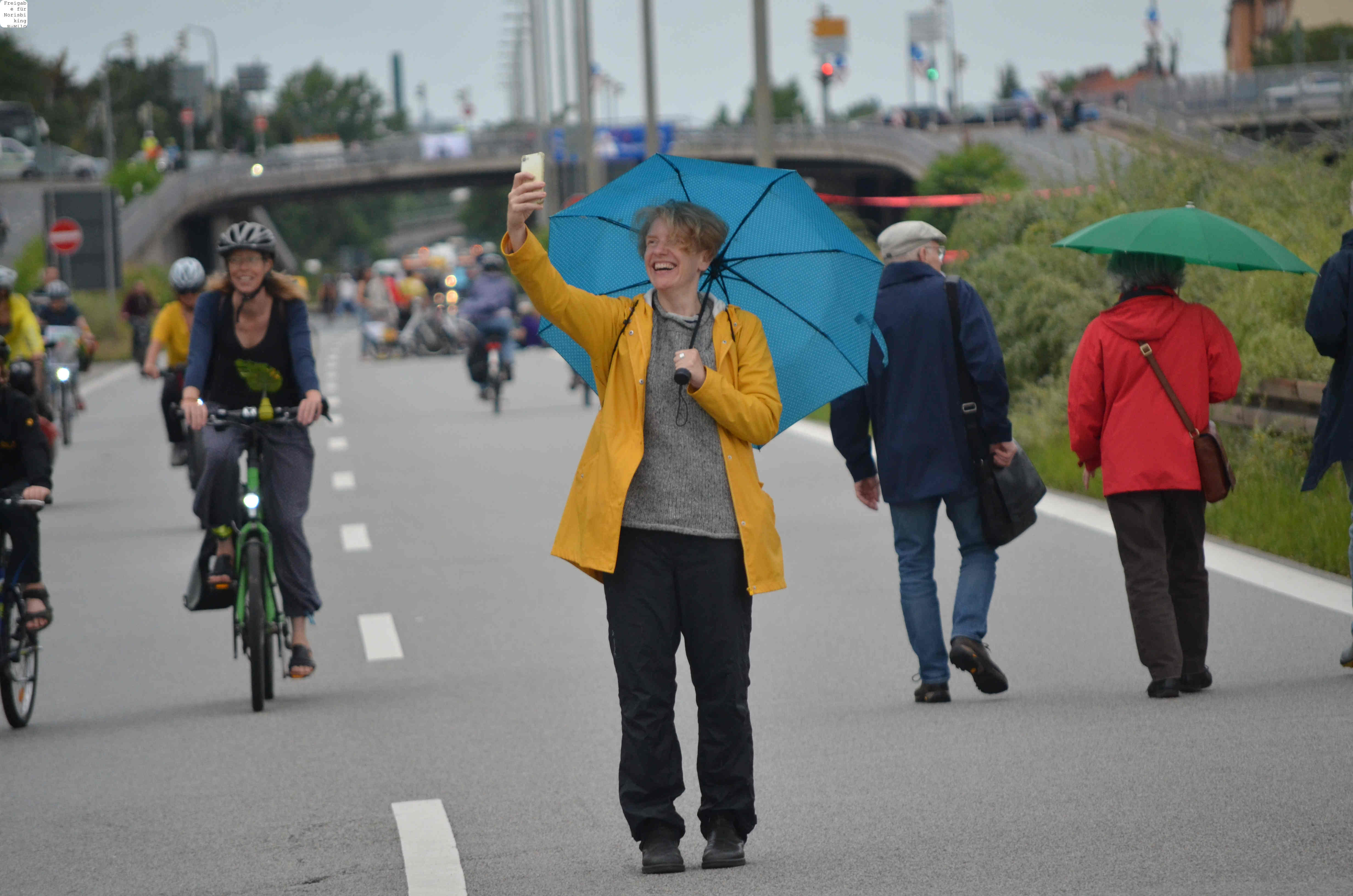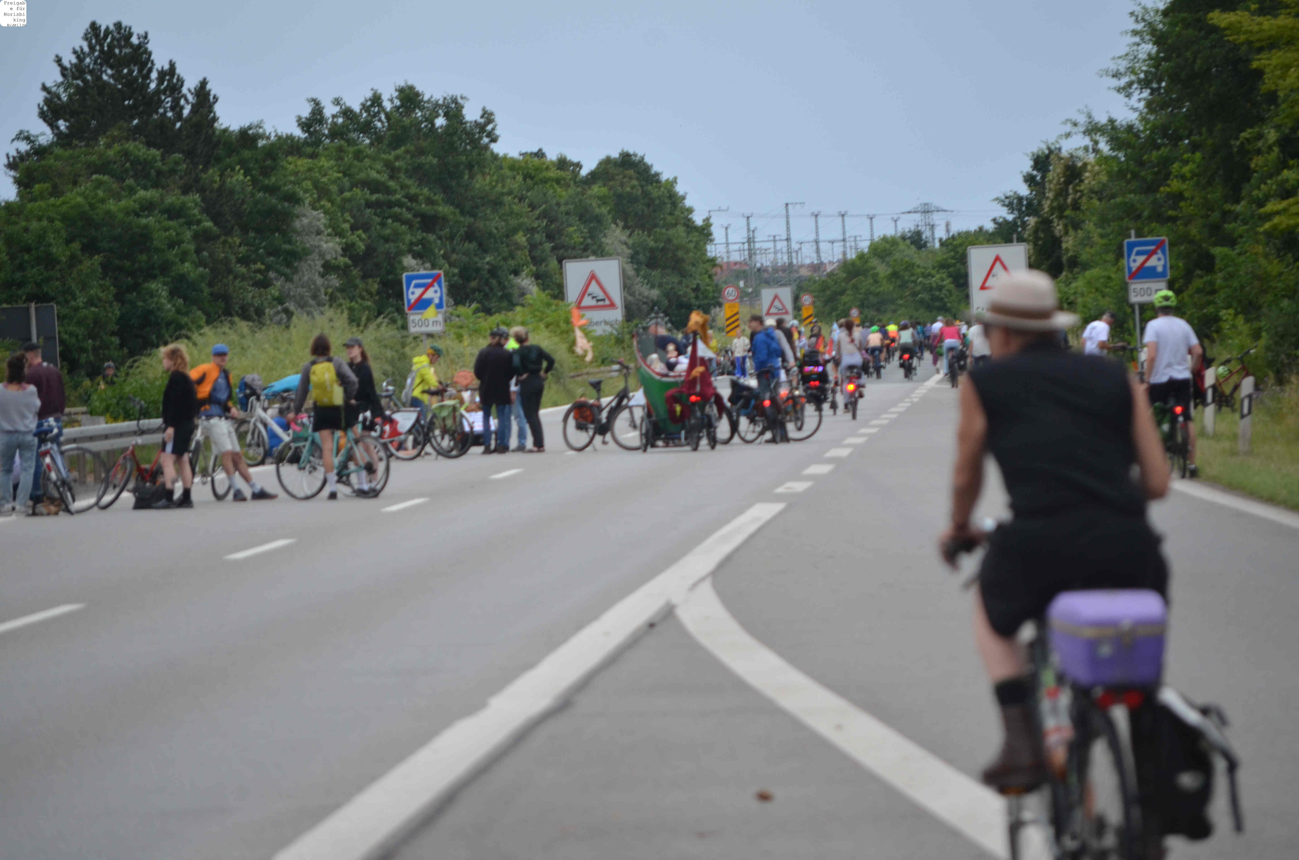 Jegliche Diskussion bereits im Keim zu ersticken, den Stadtrat ungeniert als kostenlose Werbebühne missbrauchen, beschränkt die öffentliche und politische Willensbildung. Der Bedarf größerer Aktionen, um einen offenen und demokratischen Diskurs voranzubringen, war daher offensichtlich. So entstand die Idee eines ausgiebigen Runden-Radelns für das Aus der Norisring-Rennen. Da der Norisring trotz der frühzeitigen Versammlungsanmeldung schon im August 2023 nicht zur Verfügung gestellt wurde, musste das sich bildende große Aktionsbündnis auf den Frankenschnellweg ausweichen, wodurch die Ausbau-KritikerInnen auch gleich mit im Boot waren. Dort fand nun am ersten Juli-Wochenende gesundes, klimafreundliches und inklusives Runden-Drehen statt – für ein lebenswertes Nürnberg. Und für eine nachhaltige Stadtentwicklung, bei der die Klimaanpassung und die Mobilitätswende, also wesentliche Grundlagen für die Zukunft Nürnbergs, zentral sind.