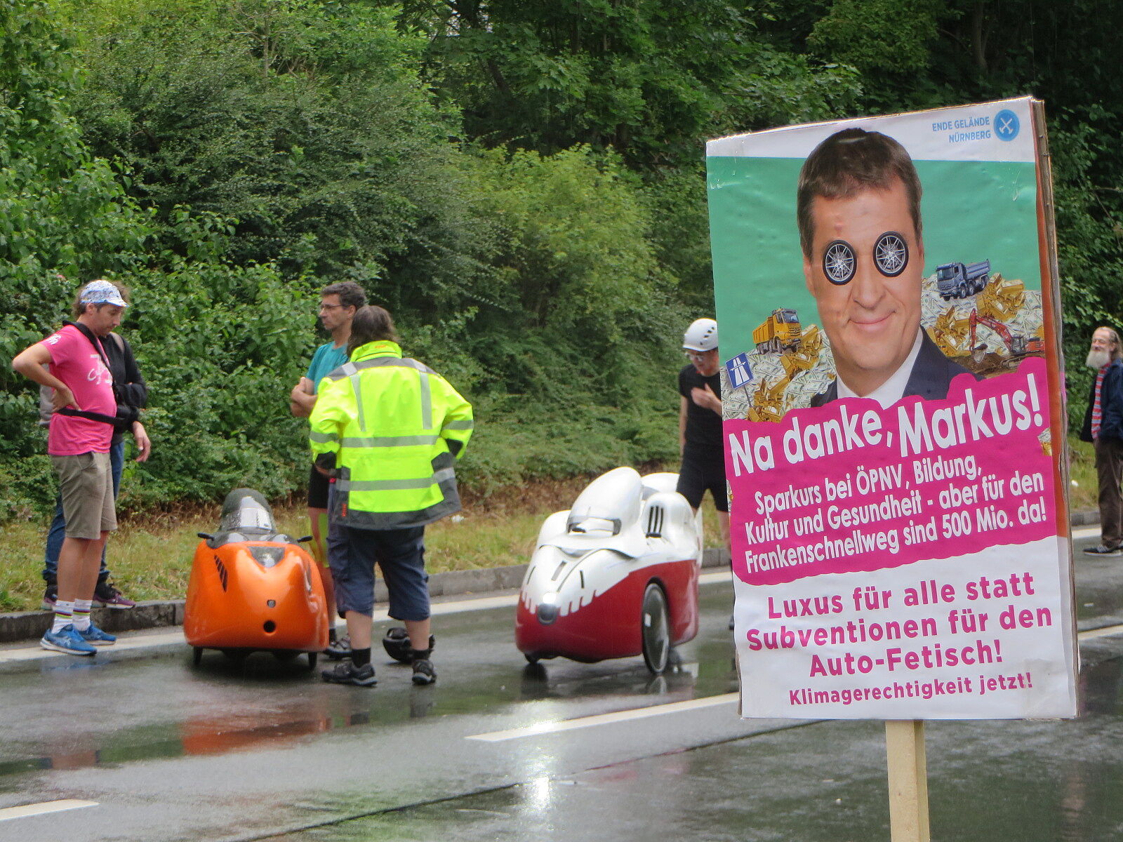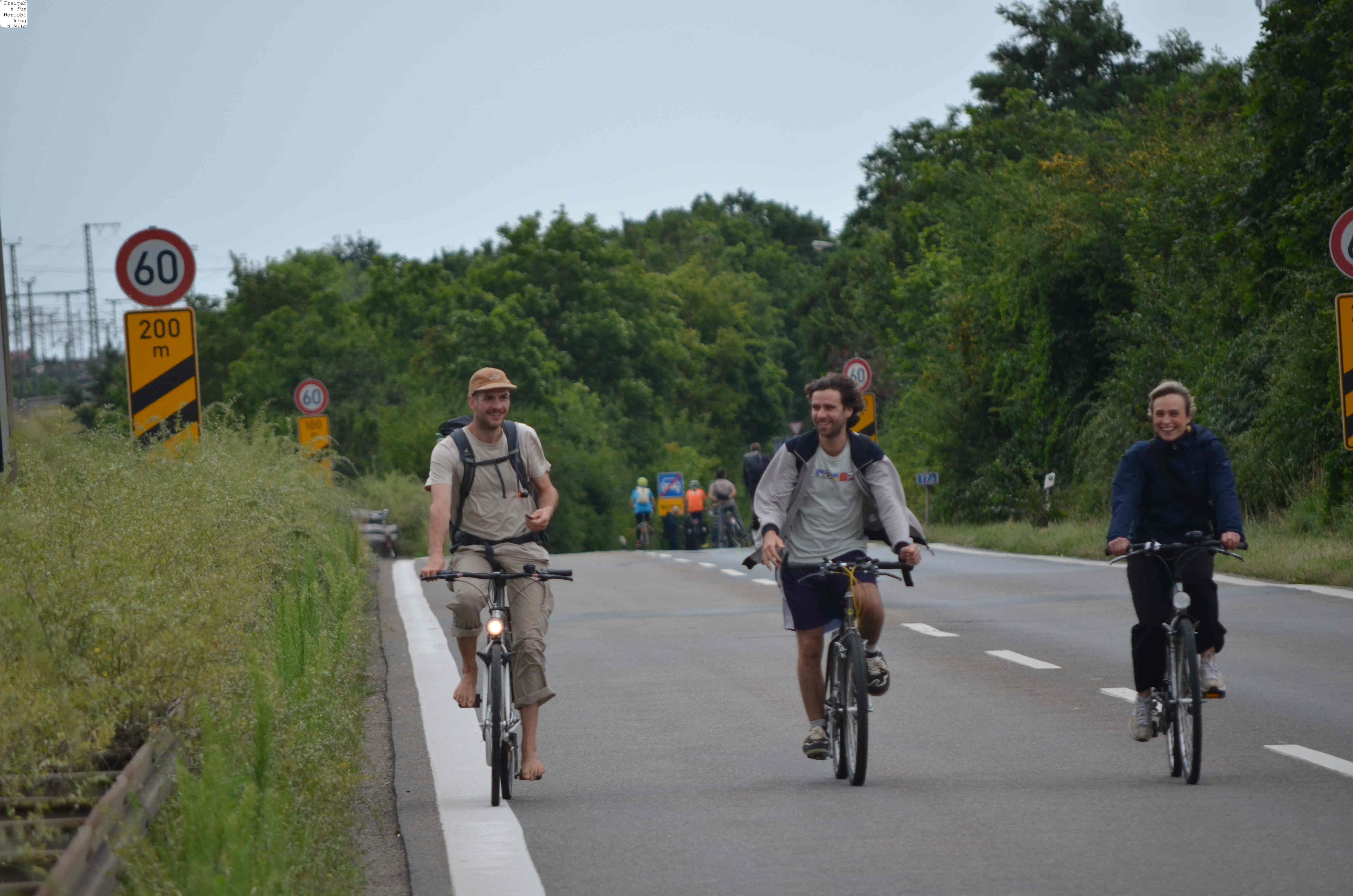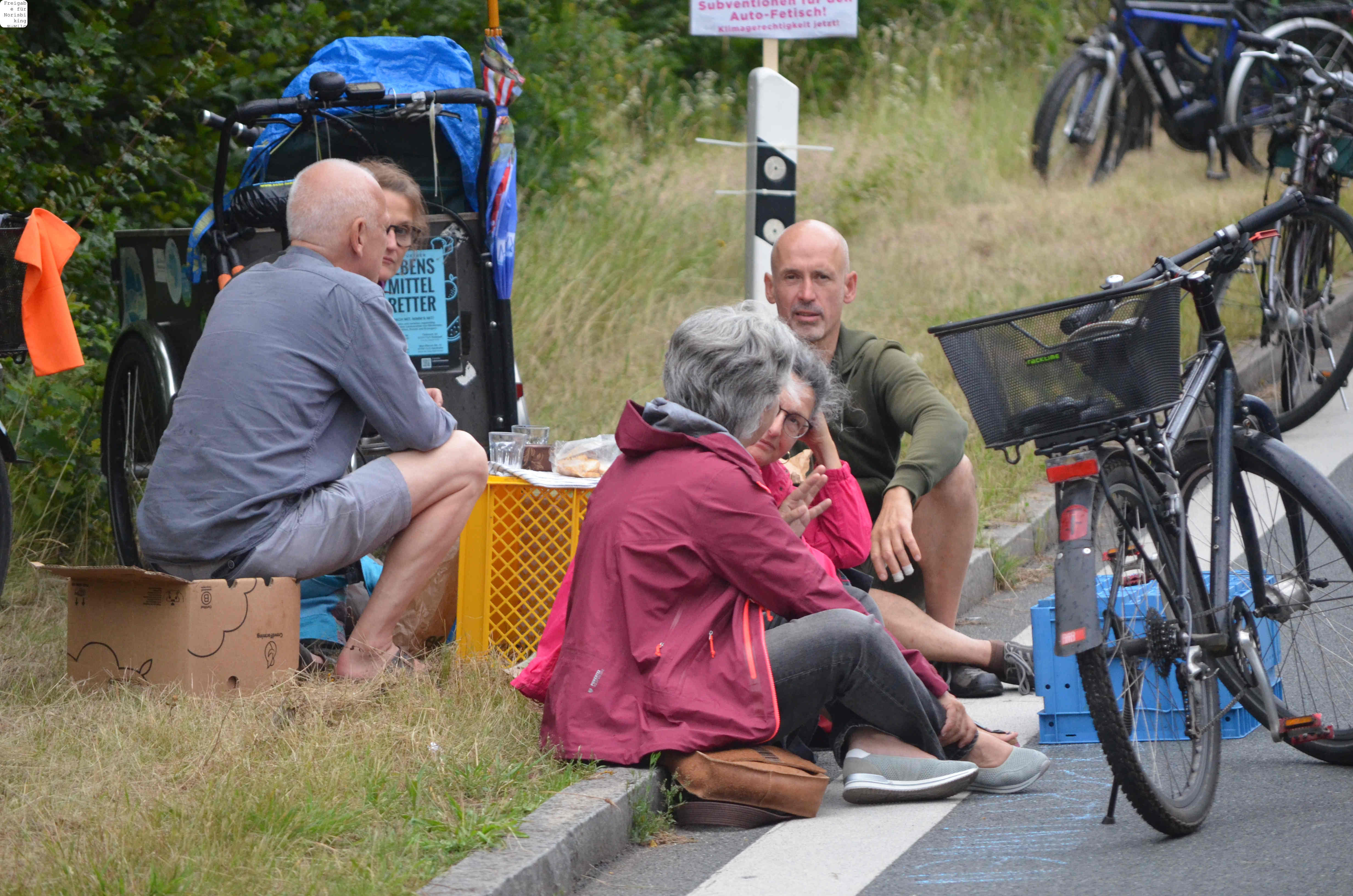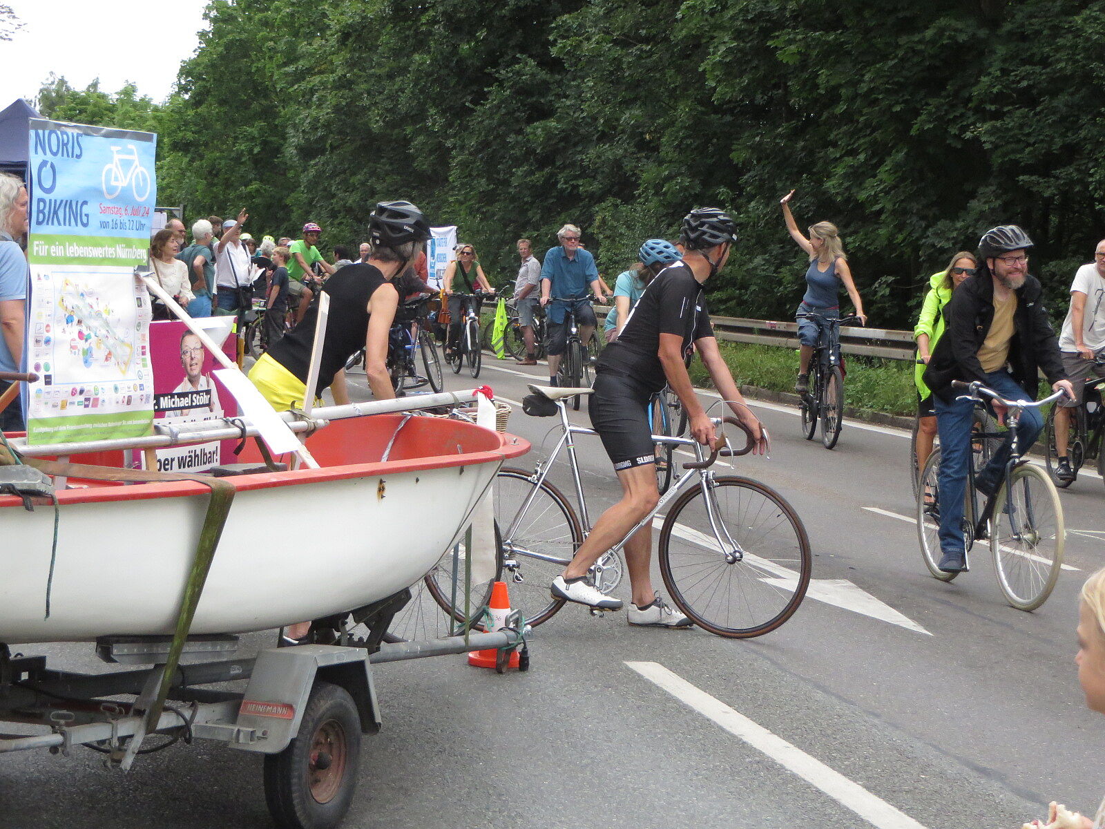 Jegliche Diskussion bereits im Keim zu ersticken, den Stadtrat ungeniert als kostenlose Werbebühne missbrauchen, beschränkt die öffentliche und politische Willensbildung. Der Bedarf größerer Aktionen, um einen offenen und demokratischen Diskurs voranzubringen, war daher offensichtlich. So entstand die Idee eines ausgiebigen Runden-Radelns für das Aus der Norisring-Rennen. Da der Norisring trotz der frühzeitigen Versammlungsanmeldung schon im August 2023 nicht zur Verfügung gestellt wurde, musste das sich bildende große Aktionsbündnis auf den Frankenschnellweg ausweichen, wodurch die Ausbau-KritikerInnen auch gleich mit im Boot waren. Dort fand nun am ersten Juli-Wochenende gesundes, klimafreundliches und inklusives Runden-Drehen statt – für ein lebenswertes Nürnberg. Und für eine nachhaltige Stadtentwicklung, bei der die Klimaanpassung und die Mobilitätswende, also wesentliche Grundlagen für die Zukunft Nürnbergs, zentral sind.