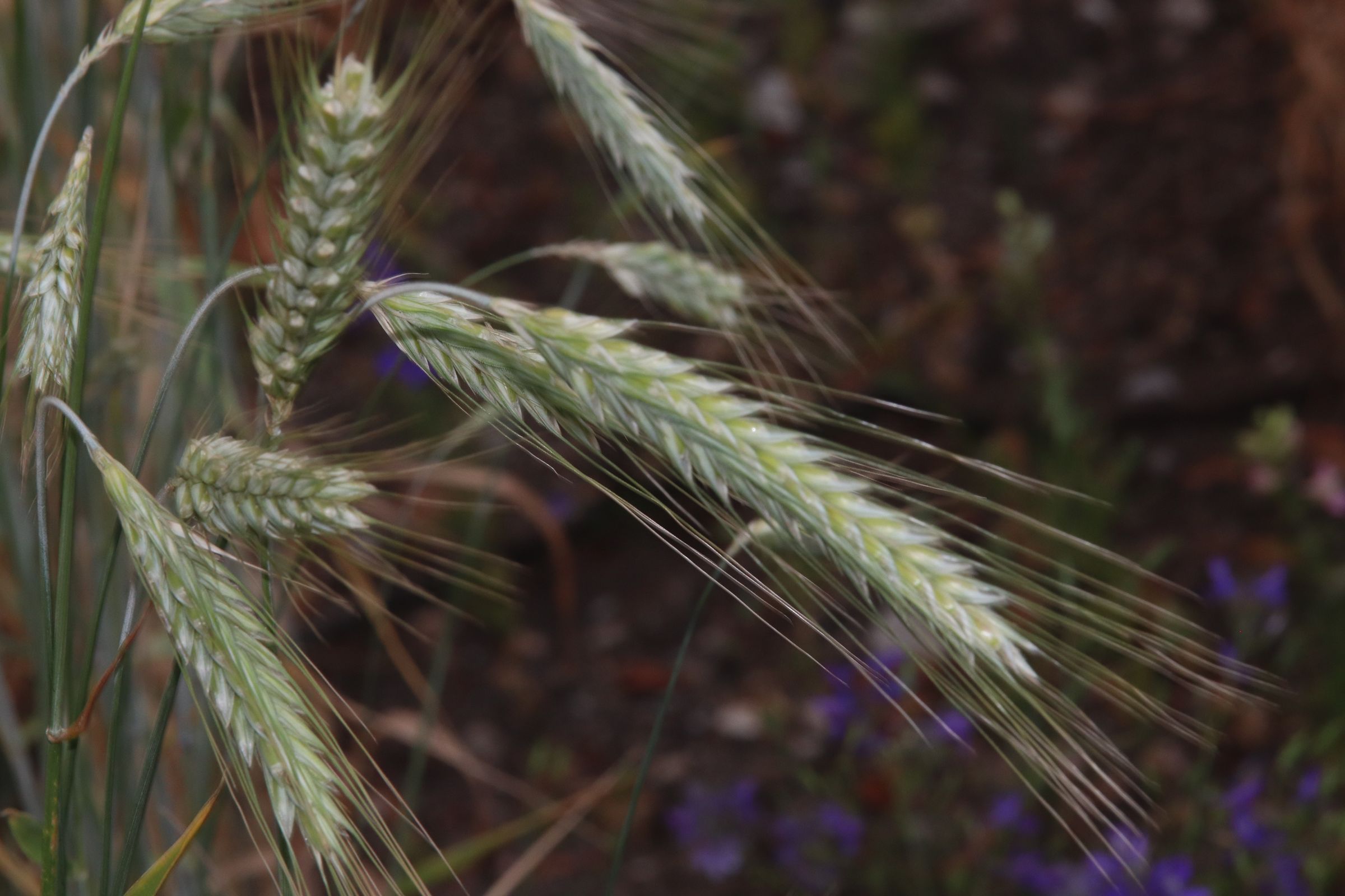 Wir haben Emmer, Einkorn, Weizen, Roggen, Dinkel, Tatarenbuchweizen, dann die Wildpflanzen Ackerrittersporn, Gartenrittersporn, Kornblume, Echte Kamille, Bauernsenf, Ackerkrummhals, Ackerhundskamille, Rundblättriges Hasenohr, Klatschmohn und Saatmohn.
