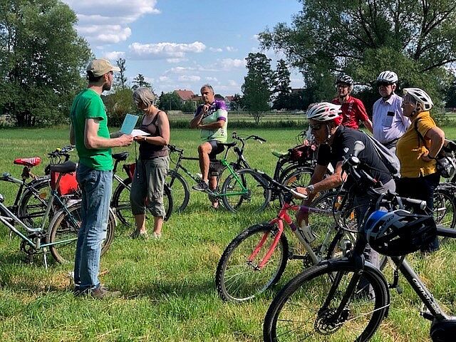 Die großen und zusammenhängenden Wiesenkomplexe in der Nähe von Kleingründlach bergen noch eine Orchideenwiese. Streuobstwiesen in der Nähe (wie auch in Reutles) bewirtschaftet die Ortsgruppe Knoblauchsland. Mandy Weber, gerade von einem Senseneinsatz auf einer der Wiesen zurück, berichtete vom Erhalt der Biotope, von Baumpflanz- und Bewässerungsaktionen.