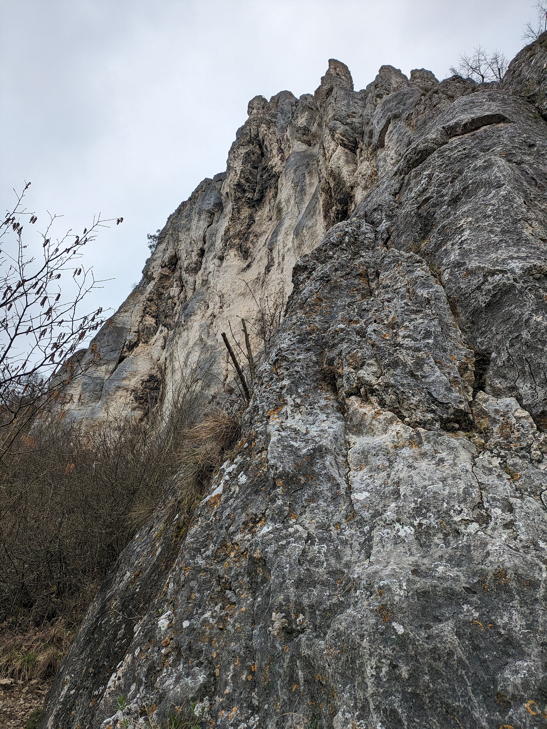 All diese spannenden Geschichten konnten wir direkt in der Landschaft festmachen, die Riffe aus dem warmen Ozean sind zu beliebten Kletterfelsen geworden, die damalige Donau (nach dem Zusammenfluss mit dem Main) zur Altmühl. Barbara erklärte farbig und spannend, und damit alles auch „hängenbleibt“, hat sie uns ein Skript mitgebracht zum Nachlesen.
