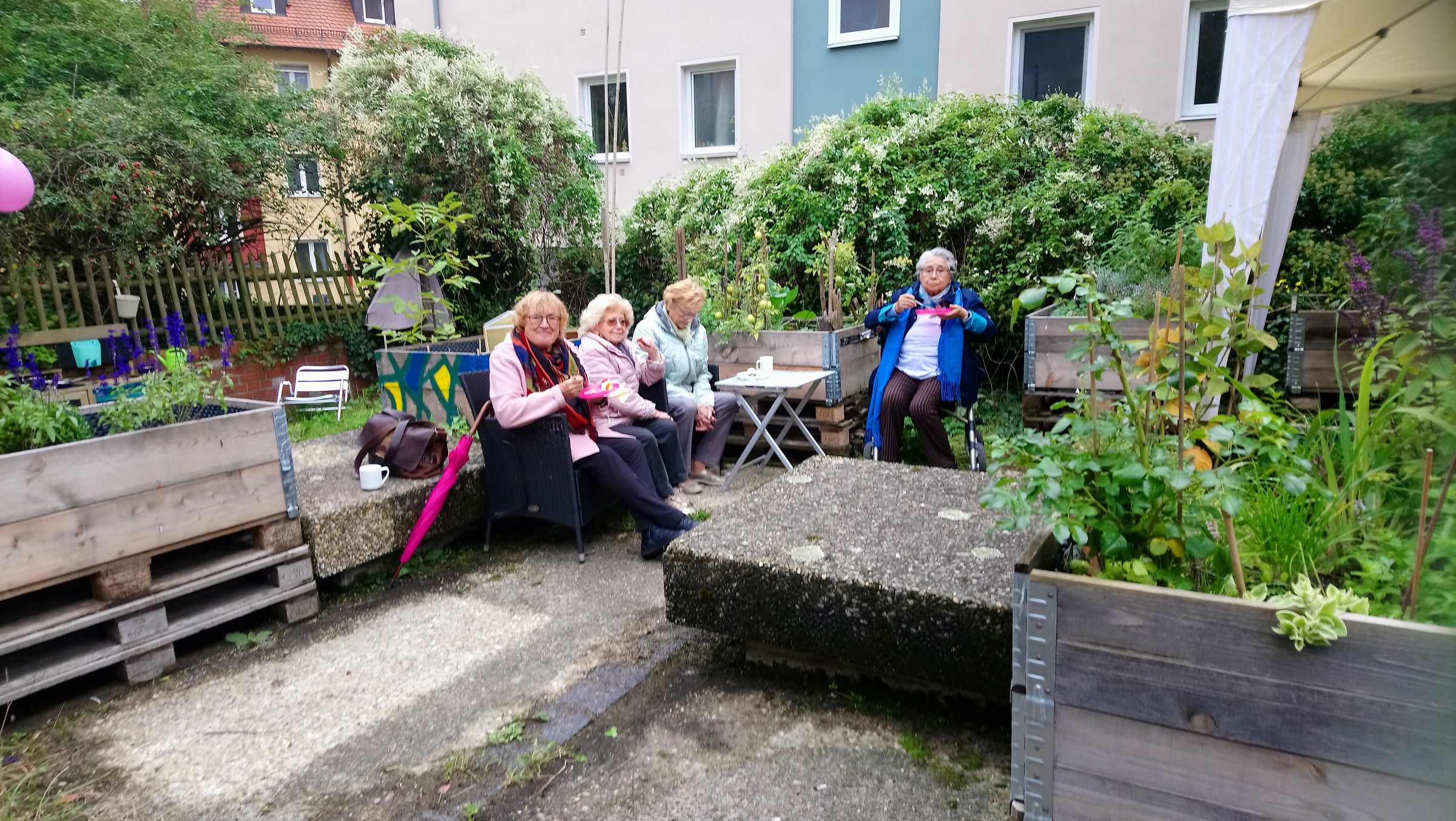 Jung und Alt kamen auf ihre Kosten, eine Gruppe von Ehemaligen traf sich zufällig beim Fest und nutzte die Gelegenheit zum Austausch, wie früher bei den monatlichen Gartentreffen.