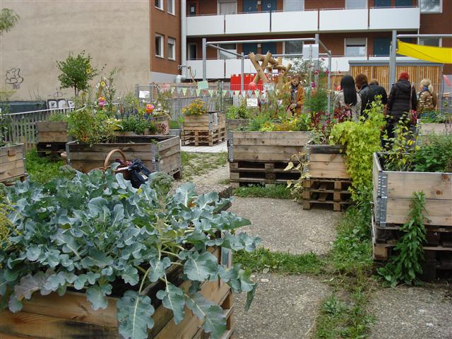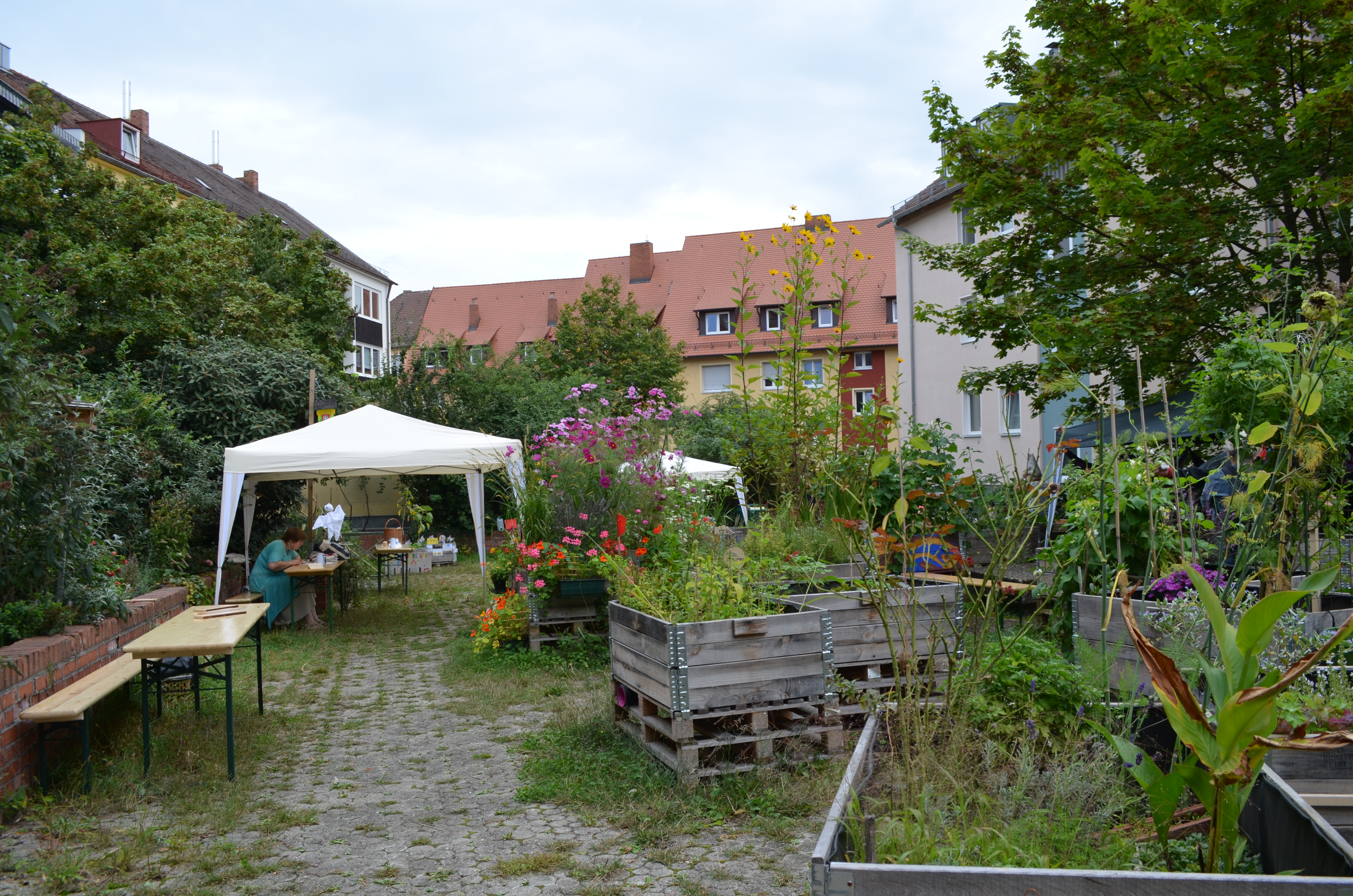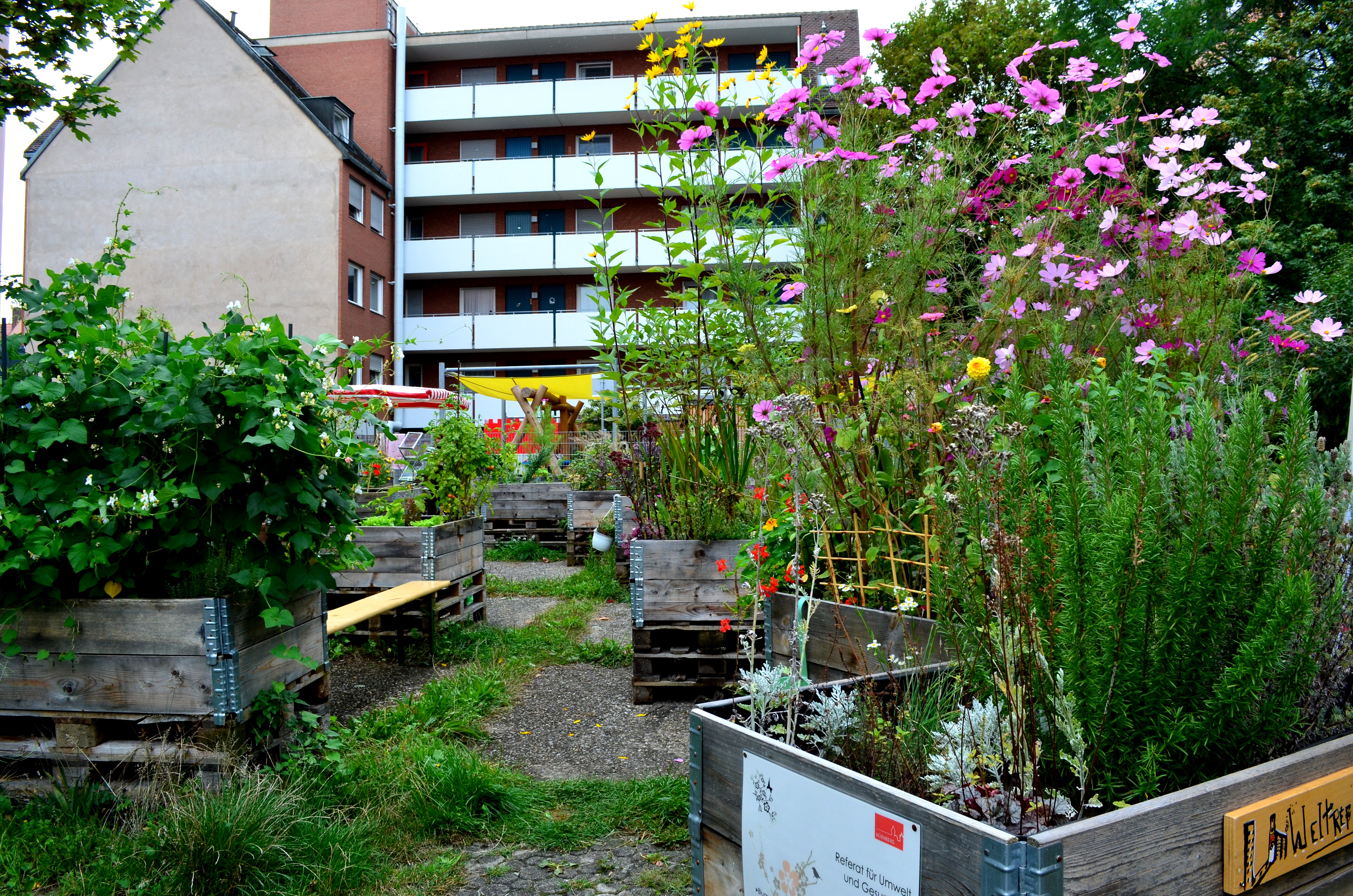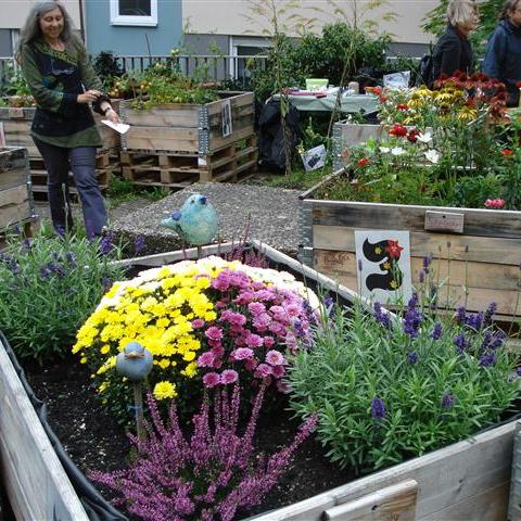 Im Frühjahr 2013 wurde ein vergessener Hinterhof in der Nürnberger Altstadt wiederentdeckt und mithilfe von Palettenbeeten in eine blühende Oase verwandelt.