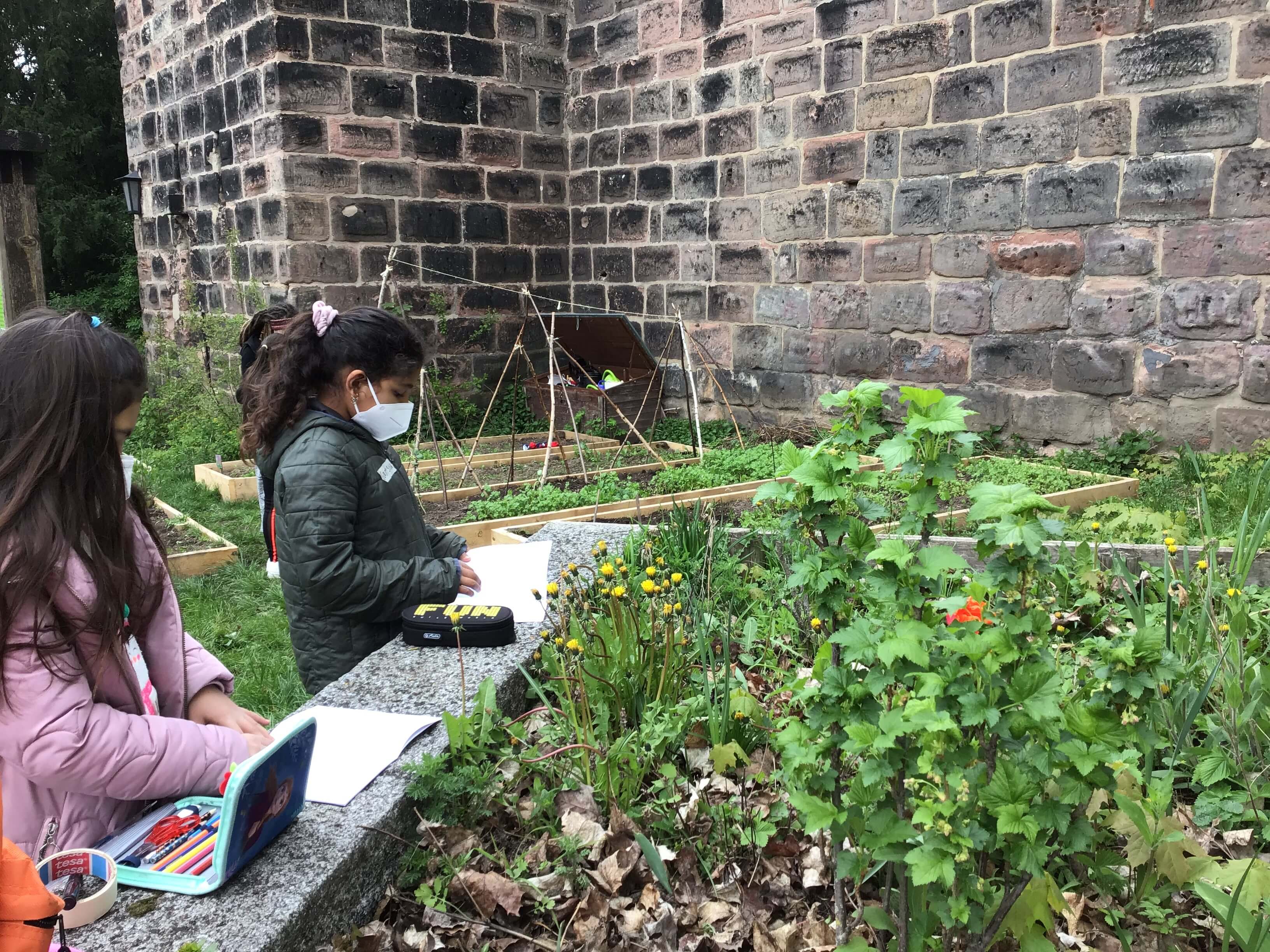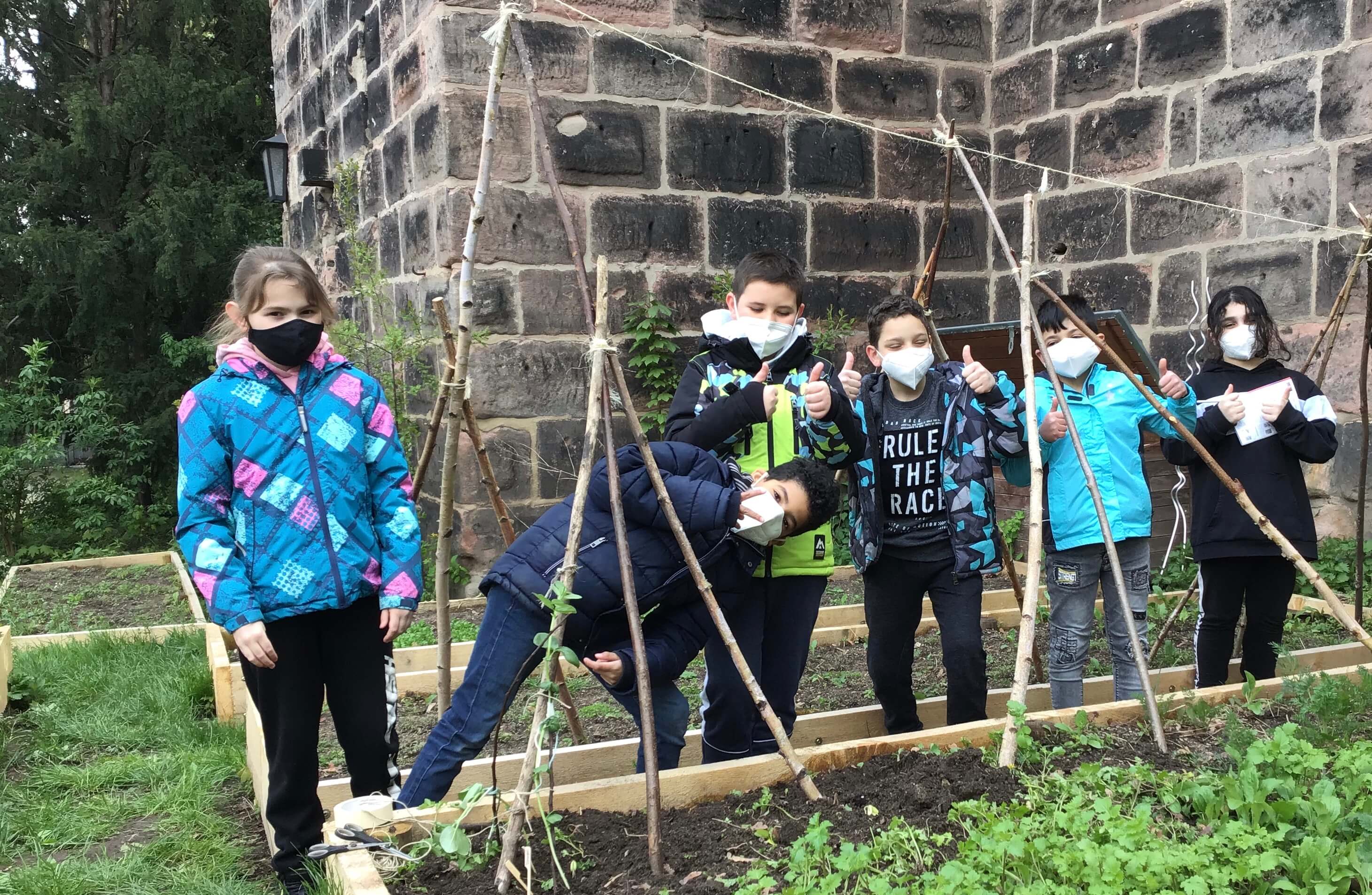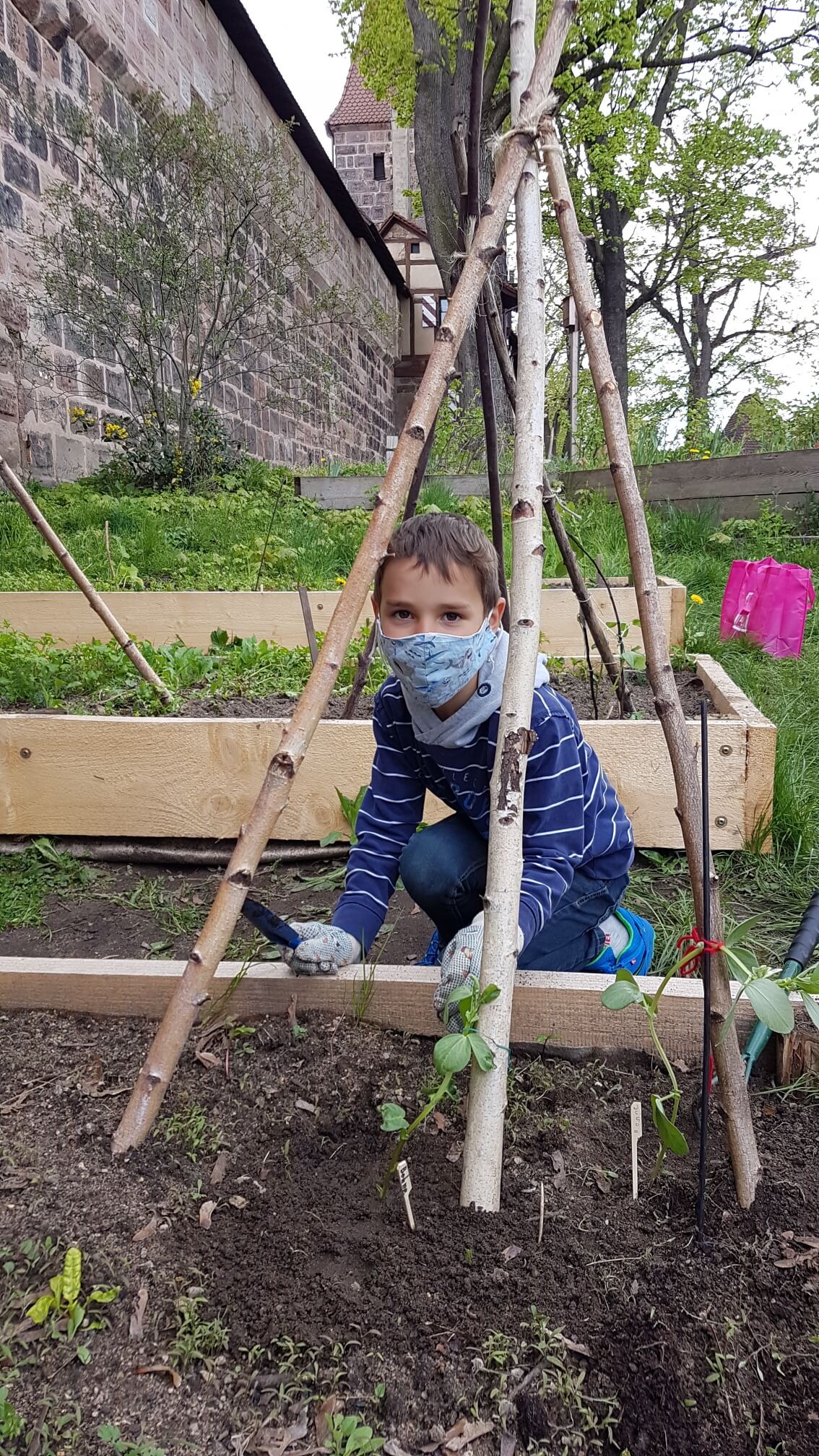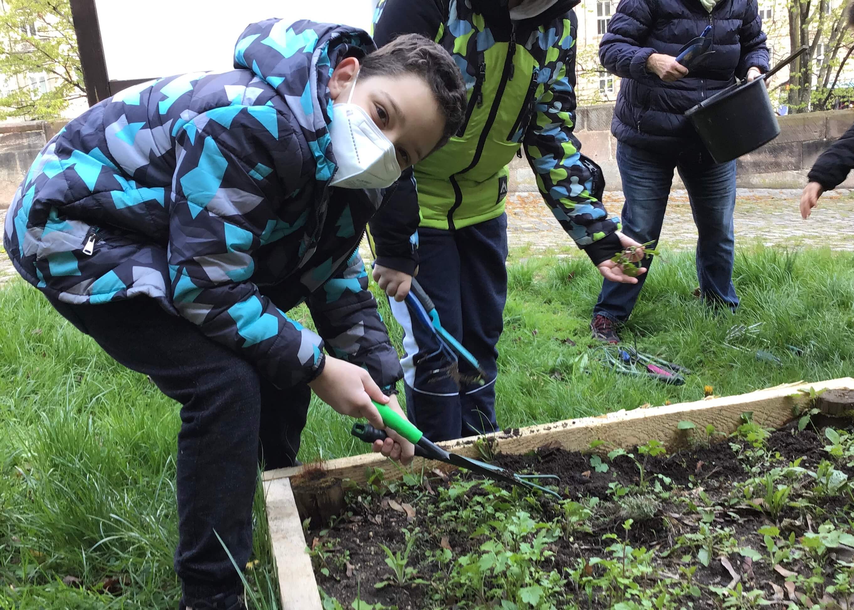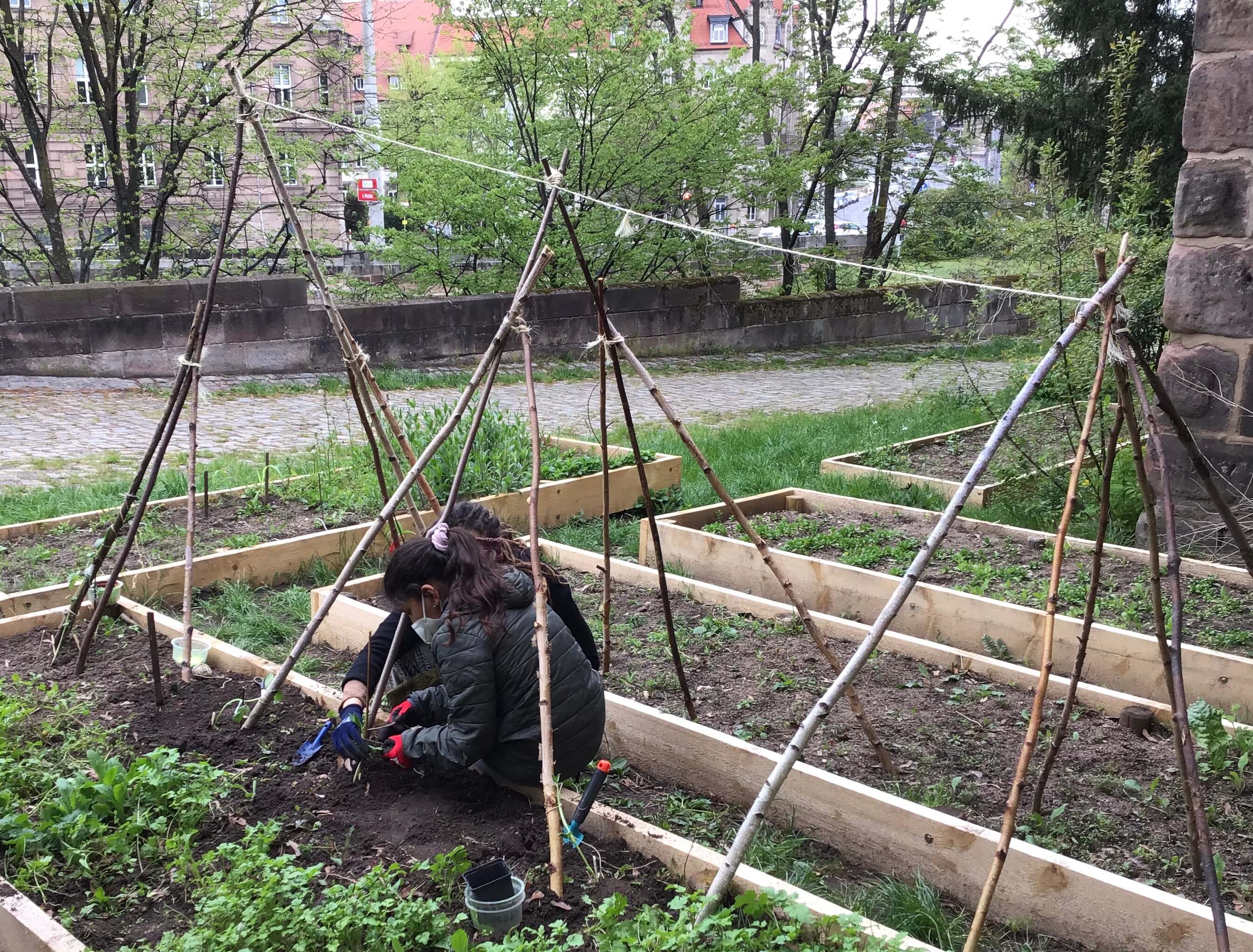 Die Kinder aller teilnehmenden Schulen – GS Knauer, GS St. Johannis und GS Paniersplatz – konnten nun in der KW 20 ihre Pflanzen in die Beete setzen. Die Klassen von Knauerschule und Paniersplatz durften sogar in jeweils halber Klassenstärke gemeinsam auf die Mauer kommen. Die Erstklässler der Grundschule St. Johannis vereinbarten mit den Umweltpädagoginnen des BUND Naturschutz Einzeltermine, zu denen sie mit ihren Eltern kamen, um den Garten kennenzulernen und ihre Pflänzchen einzupflanzen.