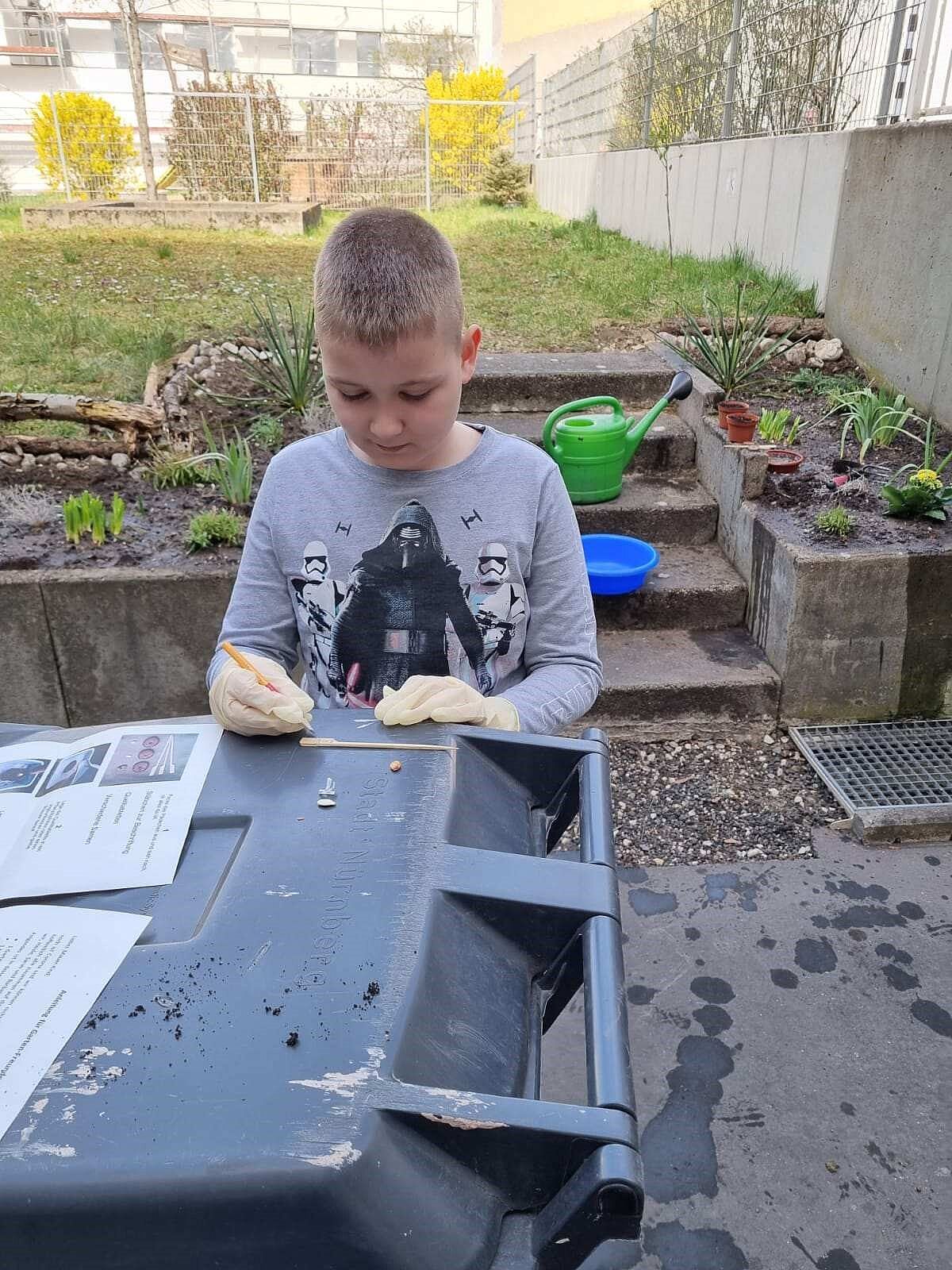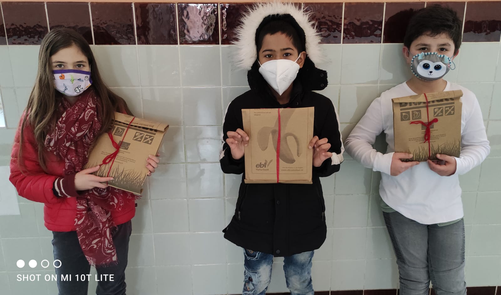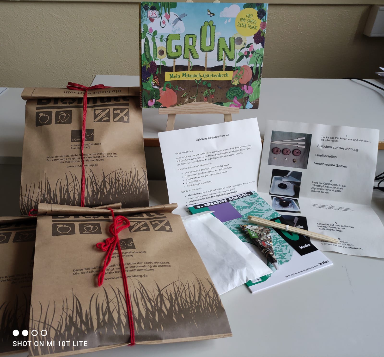 Ohne Corona wäre das in den Klassen geschehen, so erhielten die Kinder bunte Päckchen mit Samen, Erd-Quelltabletten, einer Anleitung zum Ansäen und einem bunten Mitmach-Gartenbuch. Rechtzeitig vor den Osterferien konnten die Lehrerinnen die Pakete an die Kinder verteilen. An den freien Tagen hatten die Kinder Zeit, ihren eigenen kleinen Garten auf der Fensterbank anzulegen und das Sprießen der kleinen Pflänzchen zu beobachten.