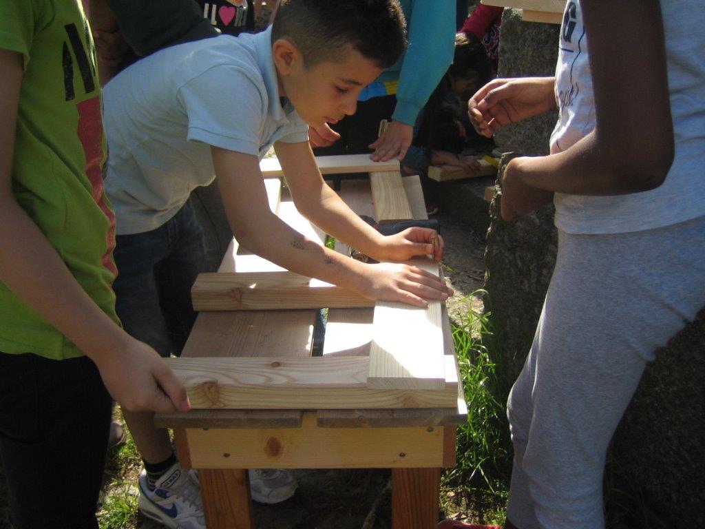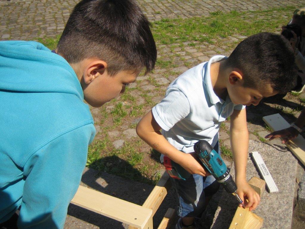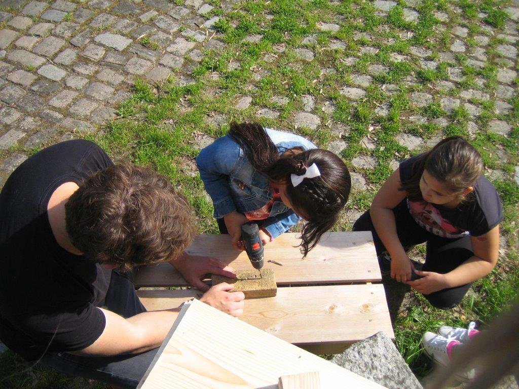 Bereits Ende März säten die Kinder in der Schule Tomaten, Bohnen, Kürbisse und Zucchini in Töpfchen und zogen kleine Pflänzchen heran. Im April wurden diese in die Beete verpflanzt und noch Salat, Radieschen und Mais angesät. Es folgten auf einem Extra-Beet ein paar Beerensträucher, alte Sorten, die auch den Mehltau, der sich gerne auf der Mauer breitmacht, vertragen können. Im Mai wurden unter Anleitung von Mitarbeitern des UrbanLab Bänke gebaut, im Juni musste heftig gegossen und das Wasser aus der 150 Meter entfernten Wasserleitung herangetragen werden.