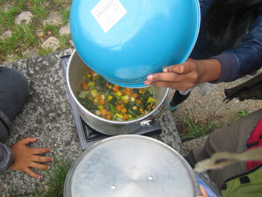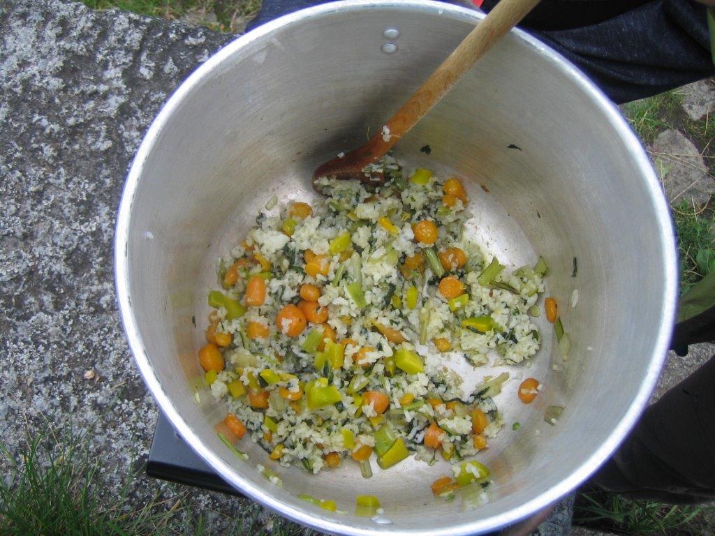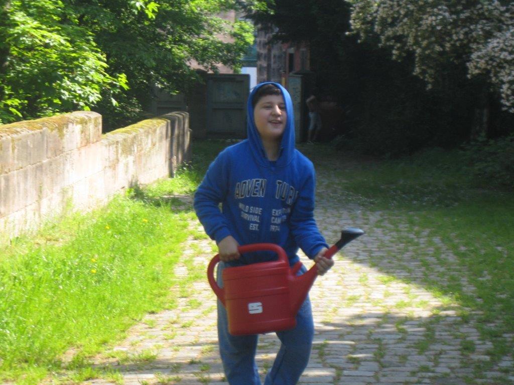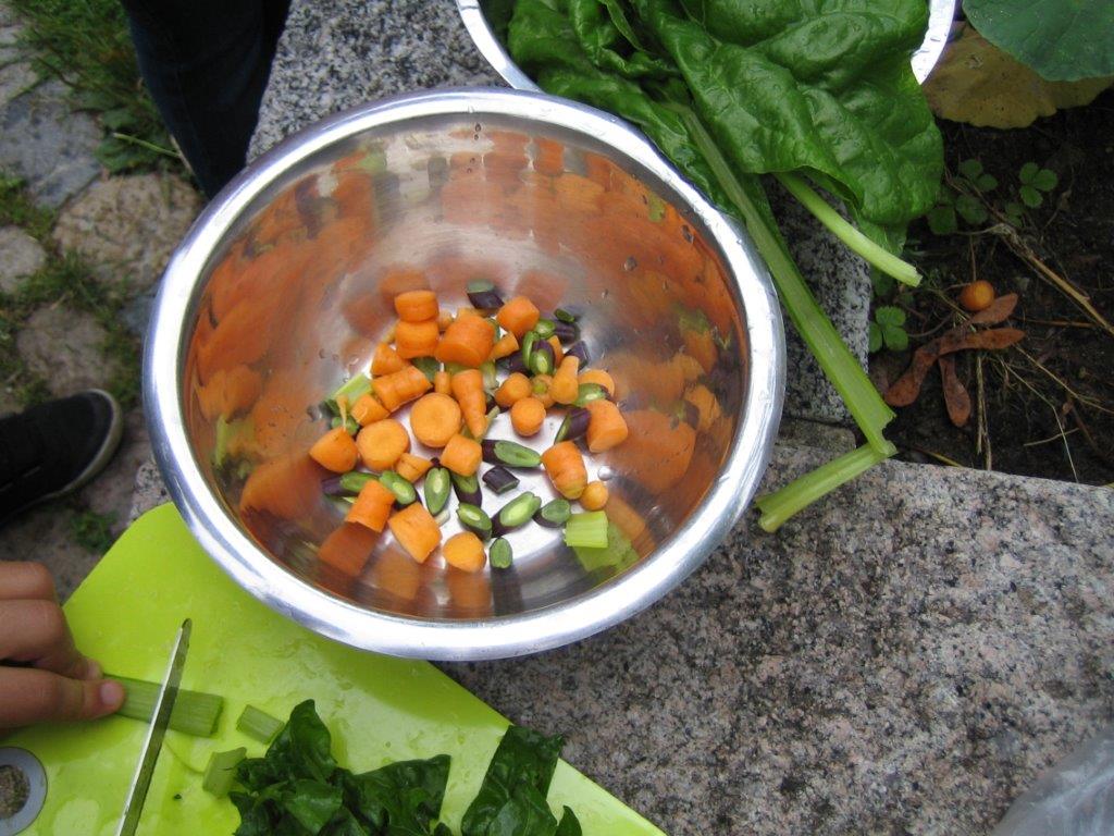 Nun endlich, im Juli und als passender Abschluss zum Start in die Sommerferien: Erntezeit! Bohnen und Erbsen, Mangold und gelbe Zucchini sowie gelbe Rüben wurden gemeinsam geerntet, kleingeschnitten und vor Ort auf der Mauer zubereitet. Es gab Gemüsereis und obwohl einige Kinder gar kein Gemüse (noch viel weniger Gemüsereis!) mögen – dieser schmeckte! „Barbara, du kochst richtig gut!“ – „Oliwia, ich freu mich doll über das Lob!“