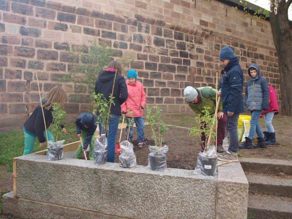 Mit zwei Klassen der Grundschulen Knauerstraße und St. Johannis, mit Vertretern der Sparkasse, des Servicebetriebs öffentlicher Raum (SÖR), dem Umweltreferat, dem 1. Vorsitzenden des BUND Naturschutz sowie zwei Umweltpädagoginnen fand am 15.04.2016 die Auftaktveranstaltung auf der Mauer statt.