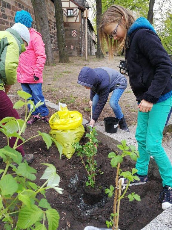 Im zweiten Jahr pflanzen und pflegen, gießen und ernten Schülerinnen und Schüler von zwei Nürnberger Grundschulklassen Beete im Spittlertorzwinger.