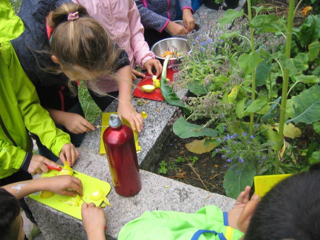 Unterstützt und angeleitet werden die Kinder bei diesem Projekt von den beiden Umweltpädagoginnen Heide Werner und Barbara Philipp, die im wöchentlichen Wechsel mit den Klassen die Beete hegen und pflegen.
