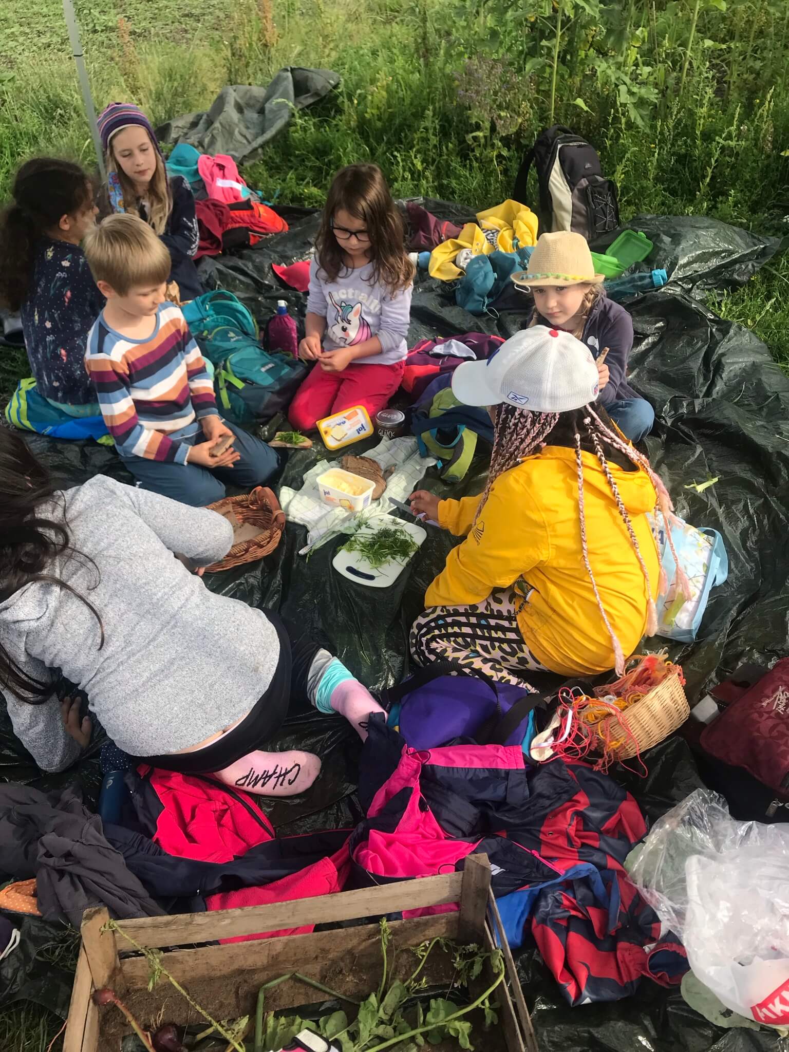 Das Ende und der Höhepunkt der Ackersaison ist unser Erntedankfest, zu dem auch die Eltern eingeladen sind. Nach der Ernte schmücken wir einen Erntedankkorb, singen Erntelieder und hören Gedichte. Gemeinsam wird dann ein leckerer Eintopf am Feuer gekocht und gegessen. Besonders lustig ist es dann beim frechen Gemüsetheater, das die Kinder mit selbstgebastelten Figuren aus Rüben, Kartoffeln, Kürbissen und anderem Gemüse aufführen.
