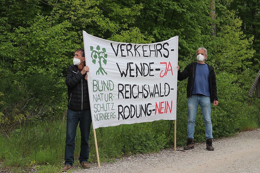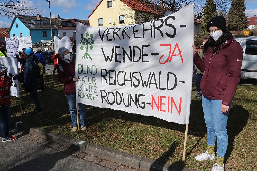 Verkehrswende ja – Reichswaldrodung nein! Bürgerinitiative und Bürgerverein Südost riefen zur Demonstration auf.