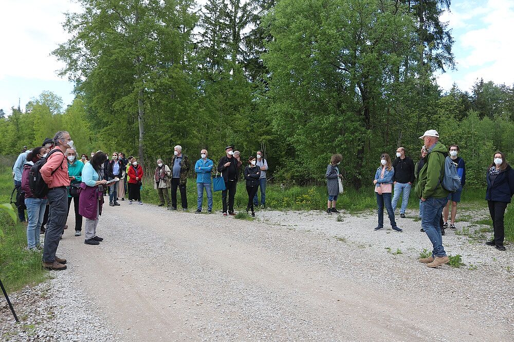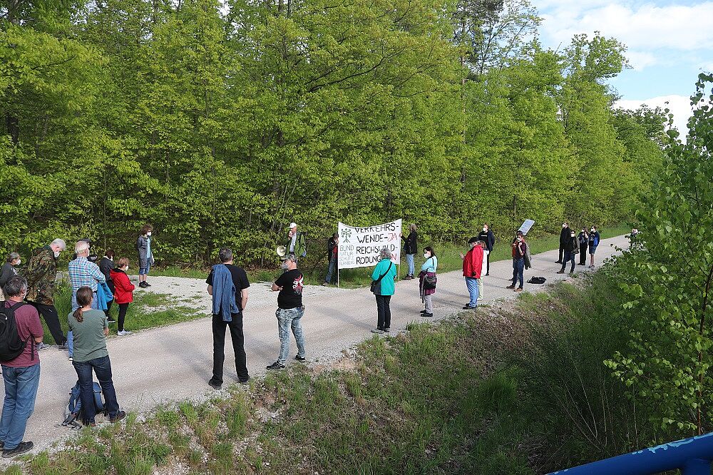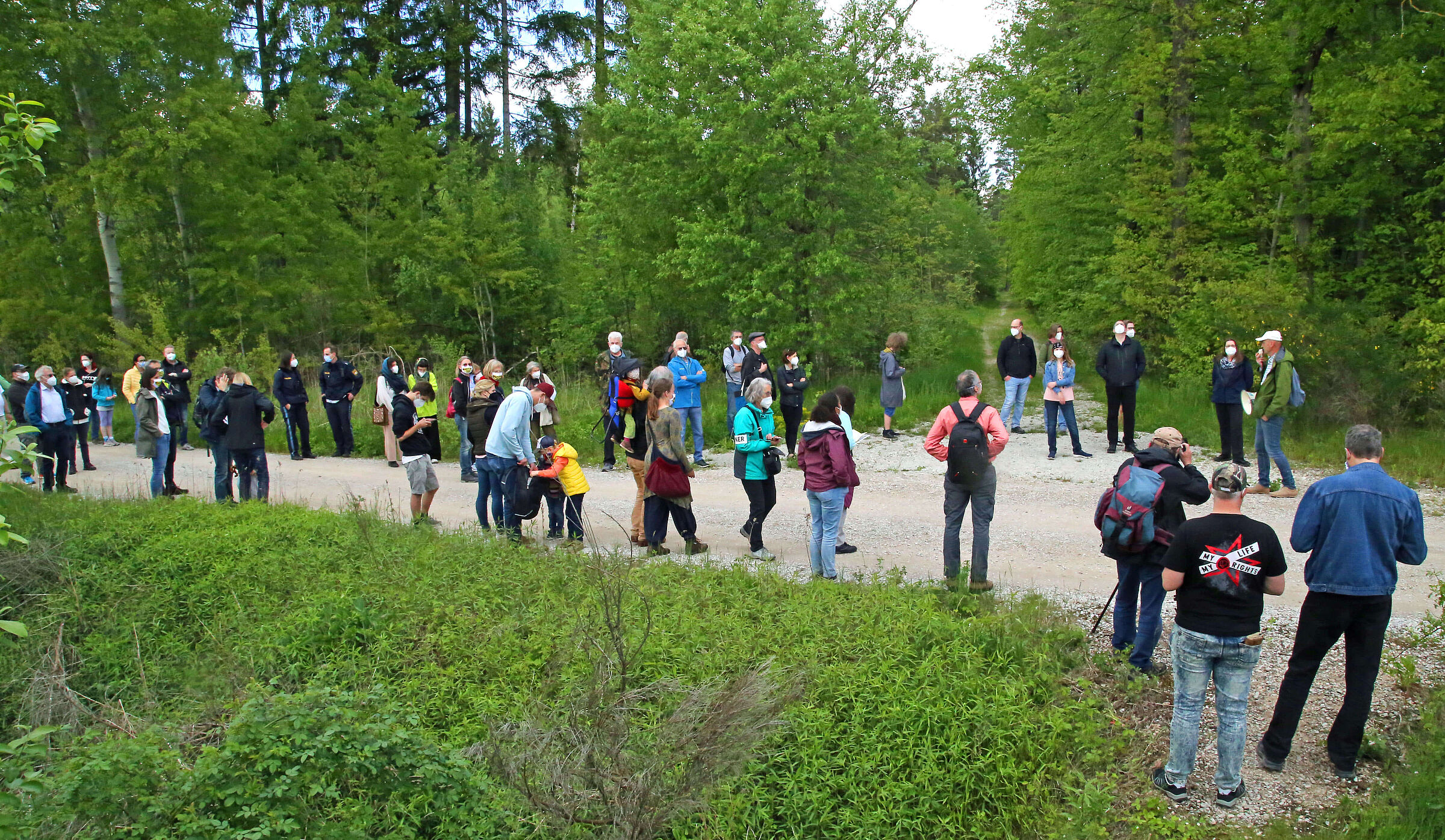 Wobei Waldspaziergang den Sachverhalt nicht trifft, denn dem BUND Naturschutz war von den Behörden strikt verboten worden, den Wald zu betreten. Die Veranstaltung musste sich auf den Fahrweg parallel zur ICE-Trasse beschränken. Dafür musste der BN dann noch die Verträglichkeit für das EU-Vogelschutzgebiet nachweisen, also dass die Demonstration auf dem Schotterweg weder Weißstorch noch Auerhuhn noch viele andere EU-weit bedrohte Vögel beeinträchtigt.