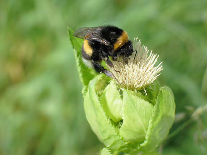 Über zwei Drittel unserer Nutzpflanzen sind auf fremde Hilfe angewiesen: die Bestäubung durch Insekten. Sie ernähren sich von Nektar und Blütenpollen. Indem Hummeln viele Blüten nacheinander aufsuchen kommt es zur Übertragung des Pollens auf andere Pflanzen. Auf diese Weise wird die Pflanze bestäubt.