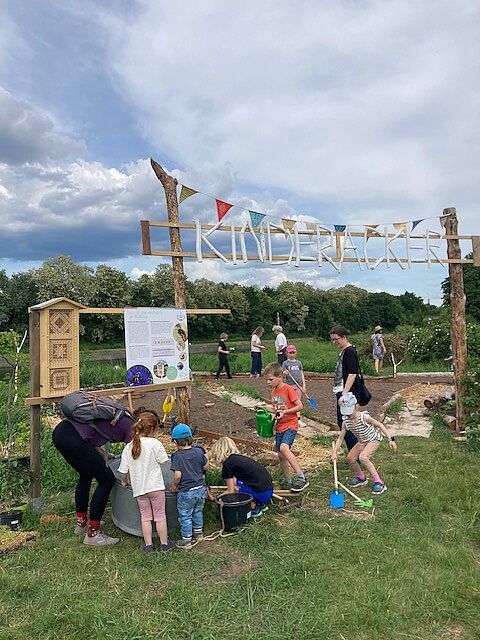 Als erstes großes Projekt des Naturgartens ging der Kinderacker am 15. Mai 2024 an den Start. In der Gemüseackergruppe erleben sechs- bis zwölfjährige Kinder von der Saat bis zur Ernte das Wachstum der eigenen Pflanze hautnah mit. Von April bis Oktober pflegen wir zusammen Kartoffeln, Bohnen, Kürbisse & Co. Bei Regen und Sonnenschein!