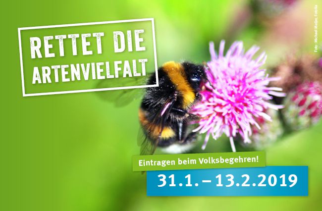 Am 15. November hat das bayerische Innenministerium den Antrag des Volksbegehrens genehmigt und den Eintragungszeitraum auf den 31. Januar bis 13. Februar 2019 festgelegt. Der BUND Naturschutz wird mit seinen 230.000 Mitgliedern das Volksbegehren aktiv unterstützen.