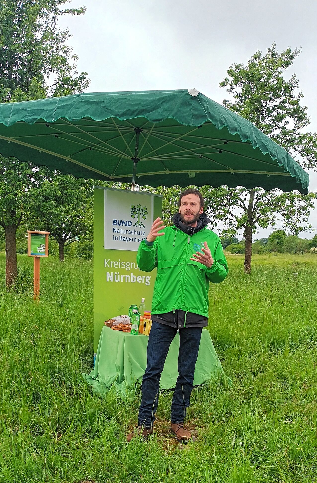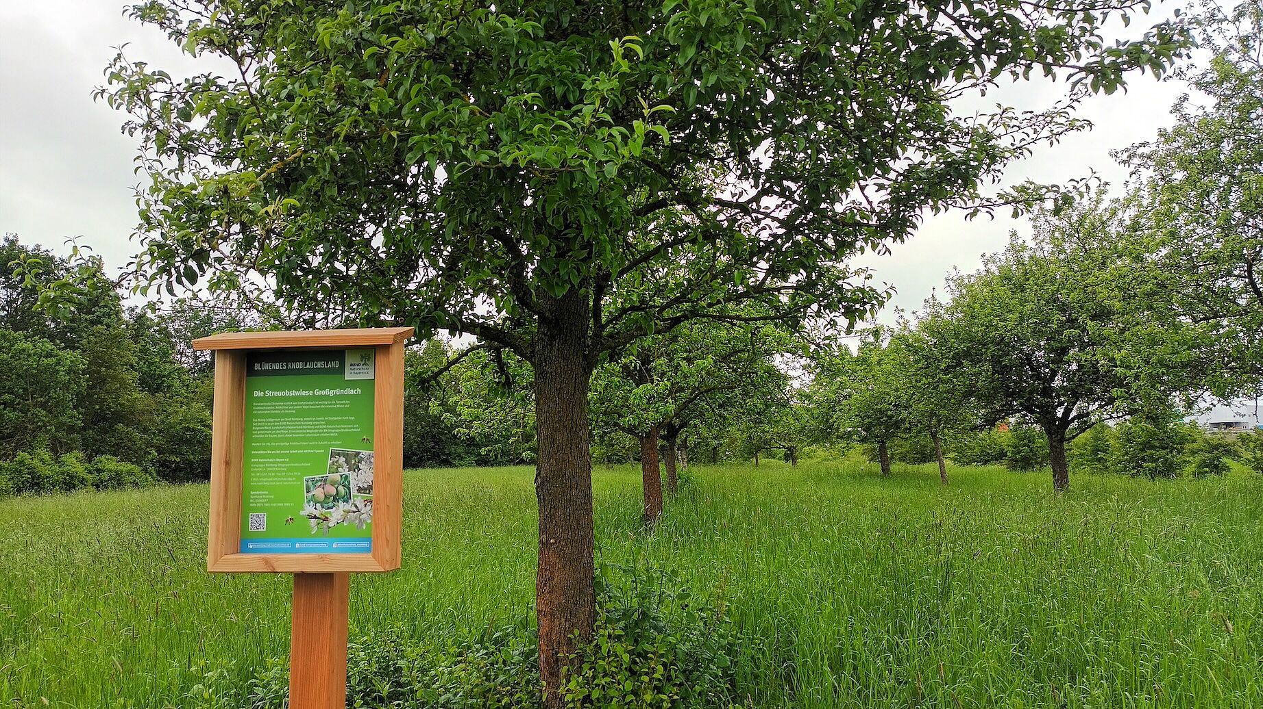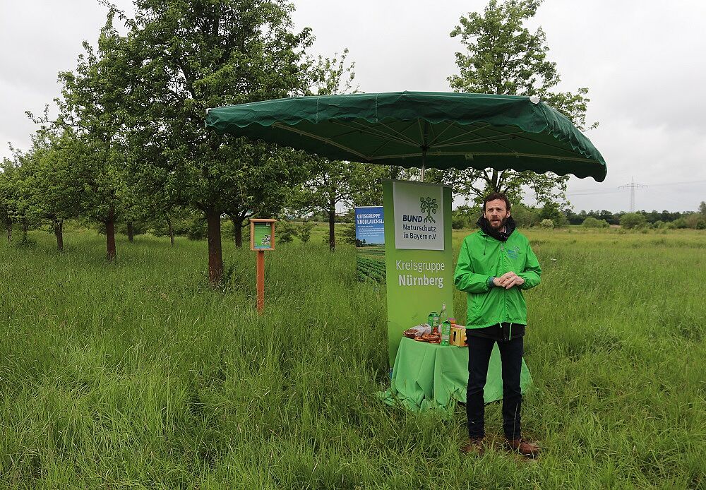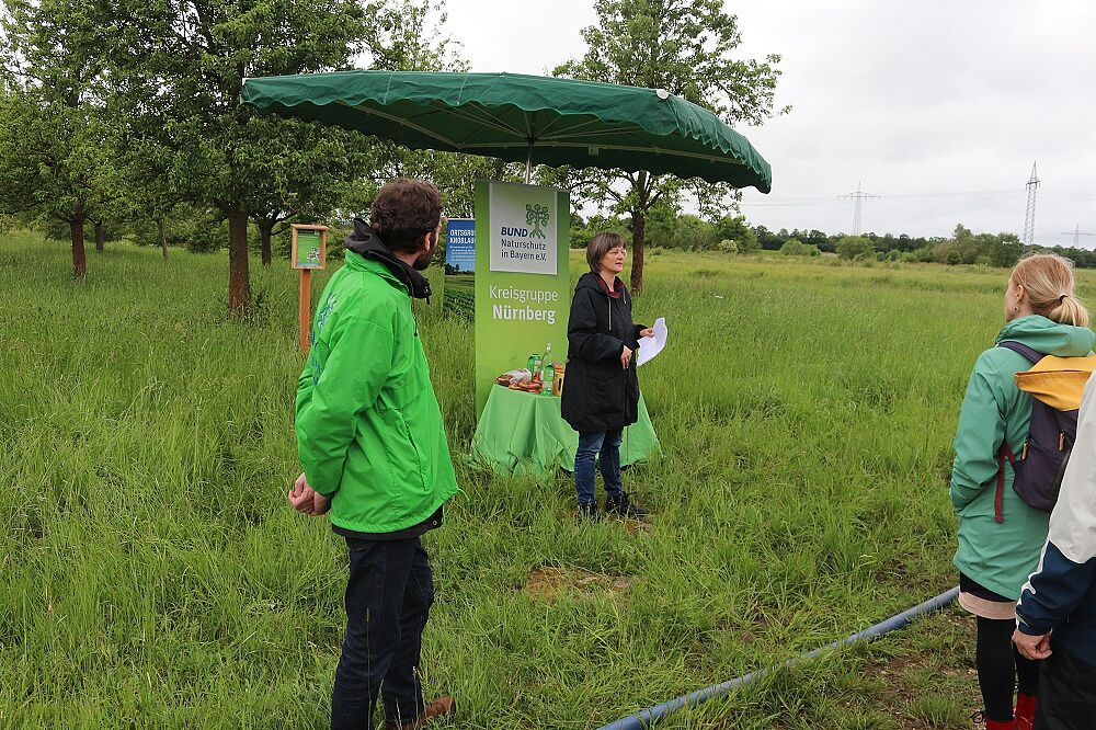 Die Streuobstwiese südlich von Großgründlach ist eines der ganz wichtigen Biotope am Herboldshofer Landgraben. Viele Jahre hat sich für die Fläche kein Nutzer gefunden. Nun wurde die Obstwiese von der Stadt Nürnberg 2023 an den BUND Naturschutz verpachtet. Gemeinsam wollen Stadt Nürnberg, Landschaftspflegeverband und BN das Biotop erhalten.
