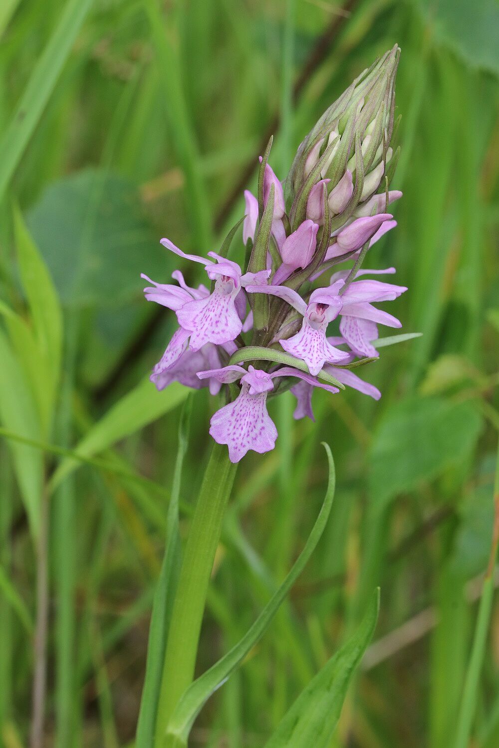 Versteckt im Wald an der Regensburger Straße betreut der BUND Naturschutz eine der wertvollsten Orchideenwiesen des Stadtgebiets. Zwei Orchideenarten kommen hier in erstaunlicher Anzahl vor. Das Große Zweiblatt (Neottia ovata) mit den kleinen, grünlichen Blüten würden viele Laien wohl gar nicht als Orchidee wahrnehmen. Dagegen ist das Gefleckte Knabenkraut (Dactylorhiza maculata) mit den rosafarbenen Blüten eine Bilderbuchorchidee. Während das Zweiblatt in Nürnberg zerstreut vorkommt, hat das Gefleckte Knabenkraut hier vielleicht seinen einzigen Standort im Stadtgebiet und ist allgemein selten. Es wird daher in Bayern auf der Roten Liste als „gefährdet“ eingestuft.