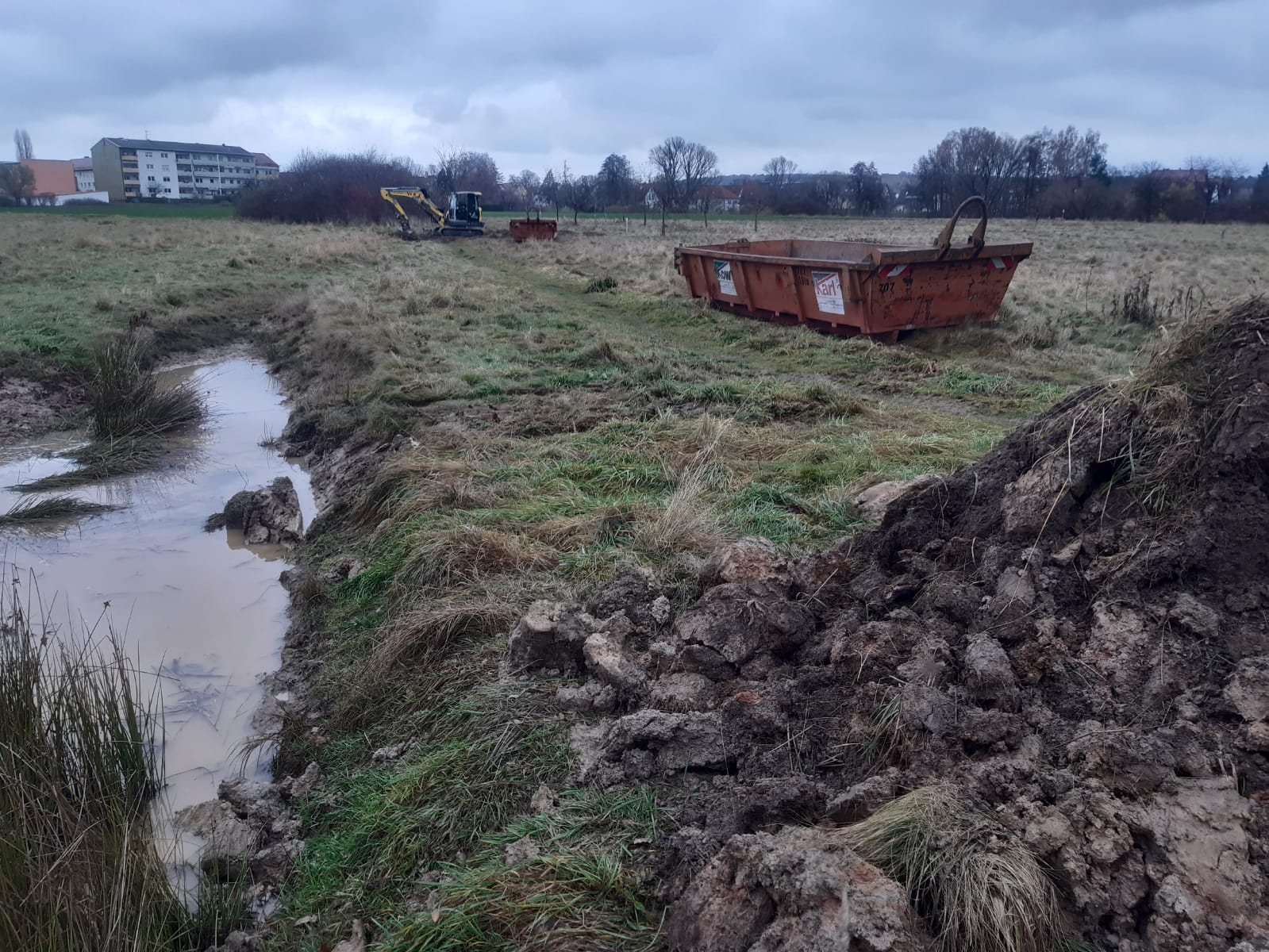Der Klimawandel setzt unseren heimischen Amphibien zu. Mit dem städtischen Biodiversitätszuschuss 2021 hat der BUND Naturschutz Nürnberg das wichtige Laichgewässer des Seefroschs bei Reutles ausgebaggert und auch mehrere Tümpel und Gräben bei Fischbach gestaltet.