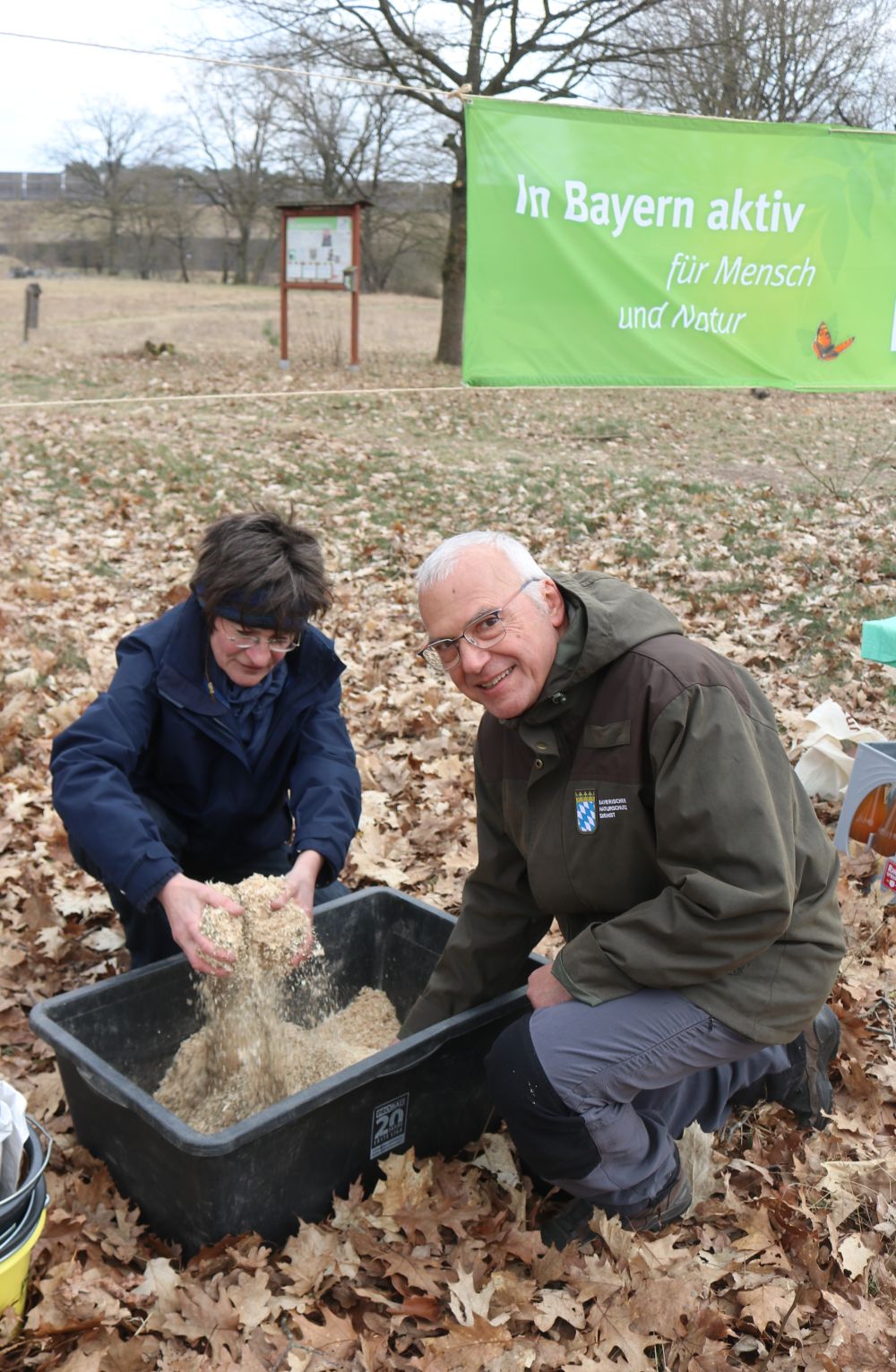 Die neu entstandene Sandfläche wurde nun mit Saatgut der SandAchse Franken gestaltet. Bei einem Pressetermin dankte der BUND Naturschutz dem BN-Ehrenvorsitzenden und CSU-Umweltsprecher Dr. Otto Heimbucher, der sich federführend für den städtischen Zuschuss eingesetzt hatte. Planung und Abwicklung erfolgen dabei über das städtische Umweltreferat.
