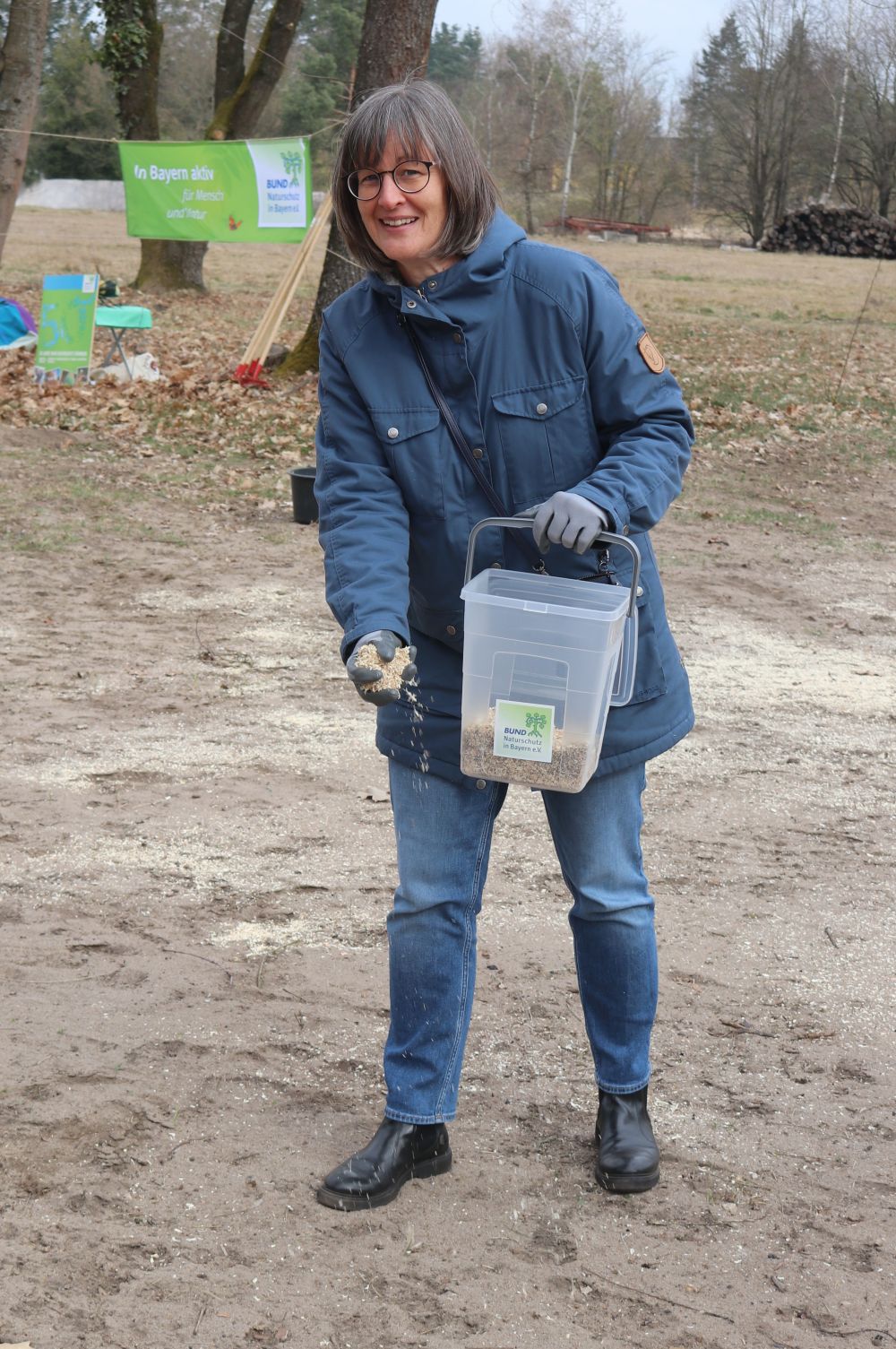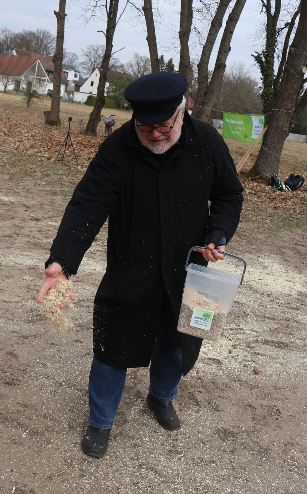 BUND Naturschutz nutzt den Biodiversitätszuschuss für Umbau und Pflege etlicher BN-Biotope. Blühfläche wurde bei Pressetermin mit Saatgut der SandAchse Franken gestaltet